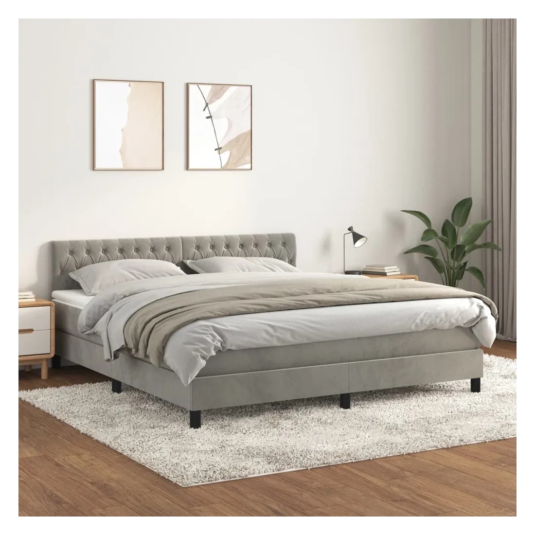 Sommier à lattes de lit et matelas Gris clair 180x200cm Velours