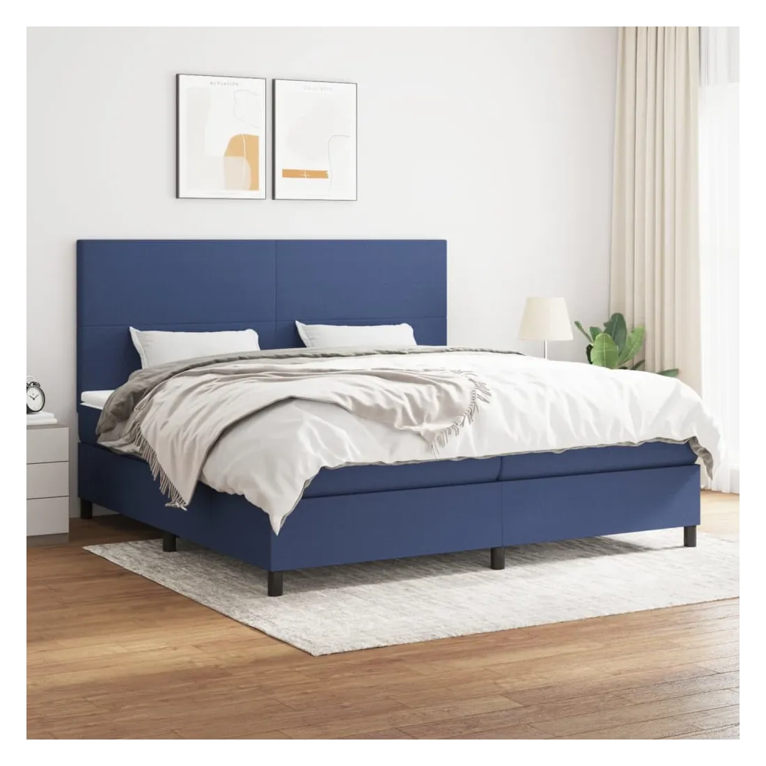 Sommier à lattes de lit avec matelas Bleu 200x200 cm Tissu