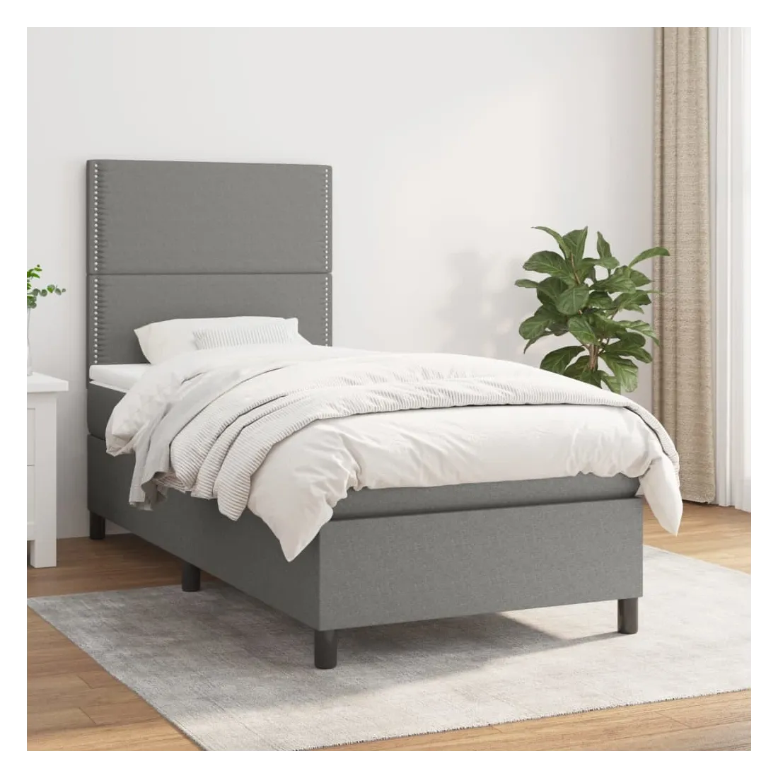 Sommier à lattes de lit et matelas Gris foncé 90x190 cm Tissu