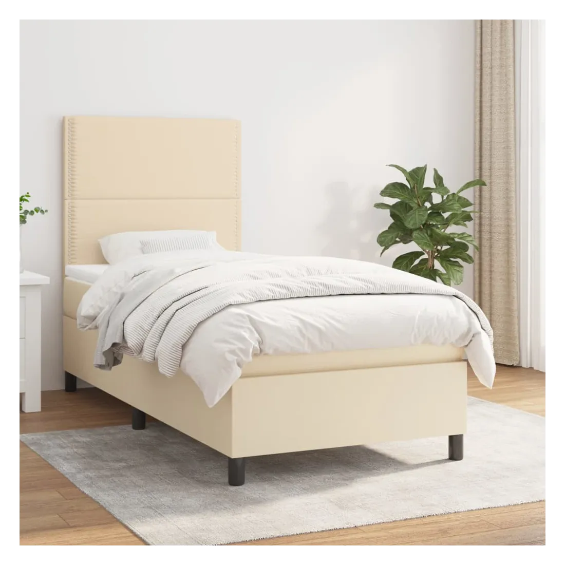 Sommier à lattes de lit avec matelas Crème 100x200 cm Tissu
