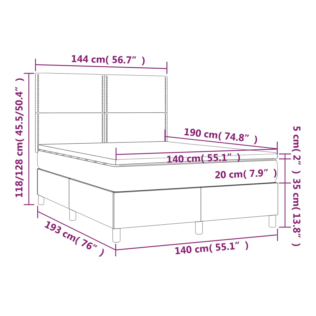- Dimensions : 140 x 190 x 20 cm (l x L x H)