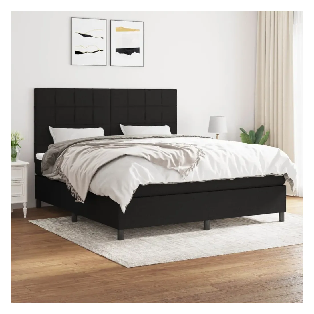 Sommier à lattes de lit avec matelas Noir 160x200 cm Tissu