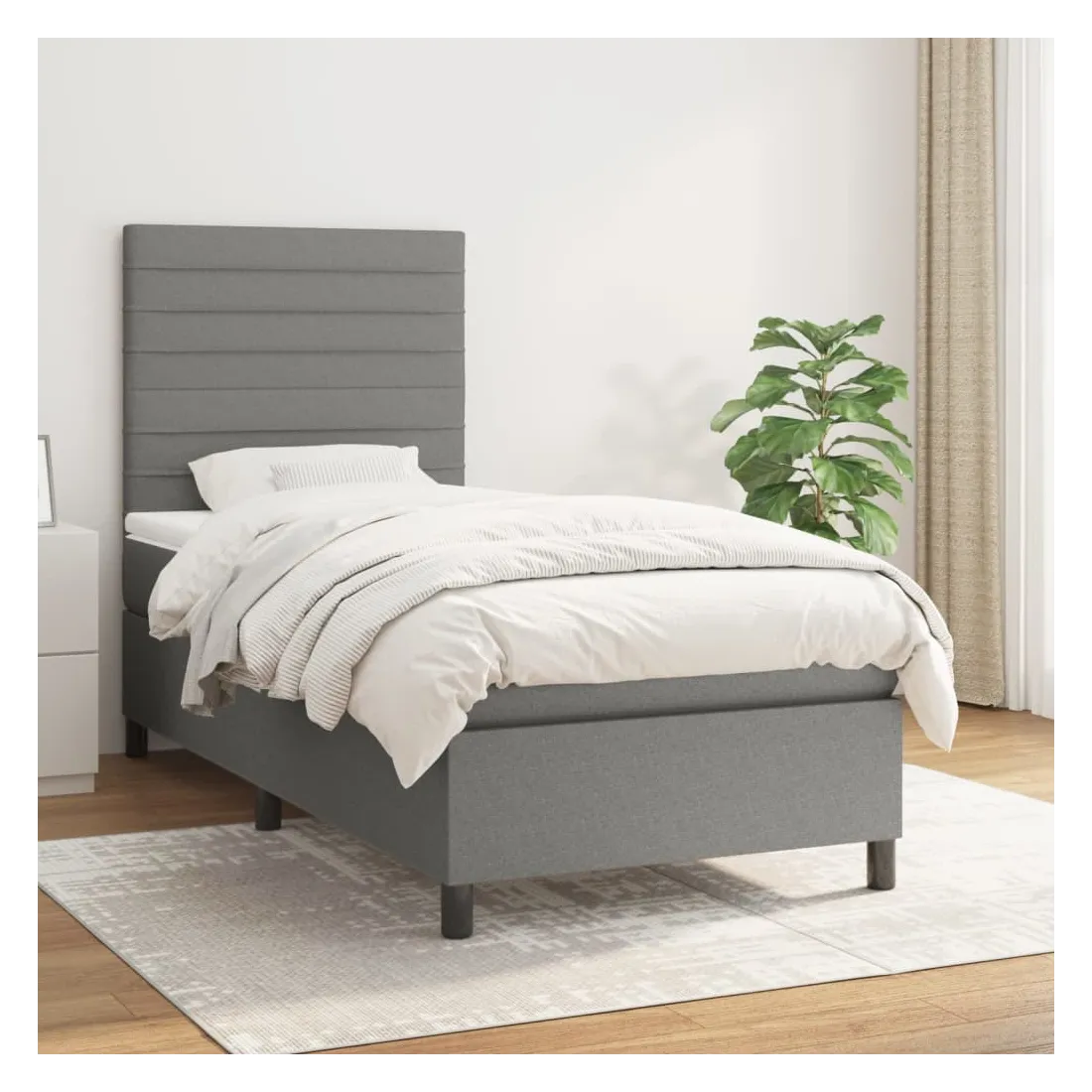 Sommier à lattes de lit avec matelas Gris foncé 100x200cm Tissu