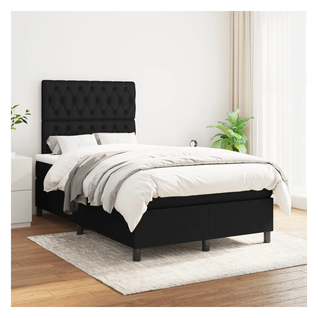 Sommier à lattes de lit avec matelas Noir 120x200 cm Tissu