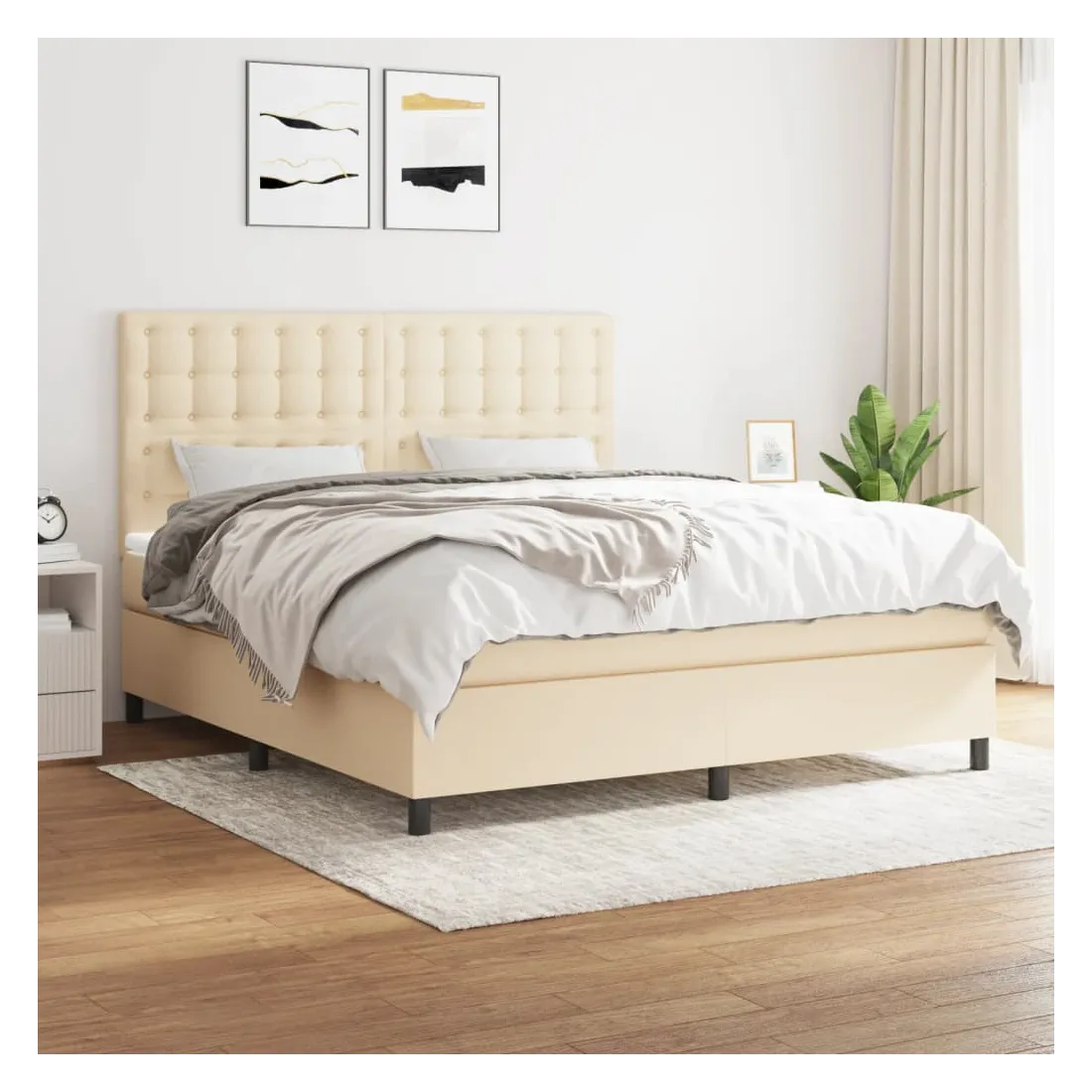 Sommier à lattes de lit avec matelas Crème 180x200 cm Tissu