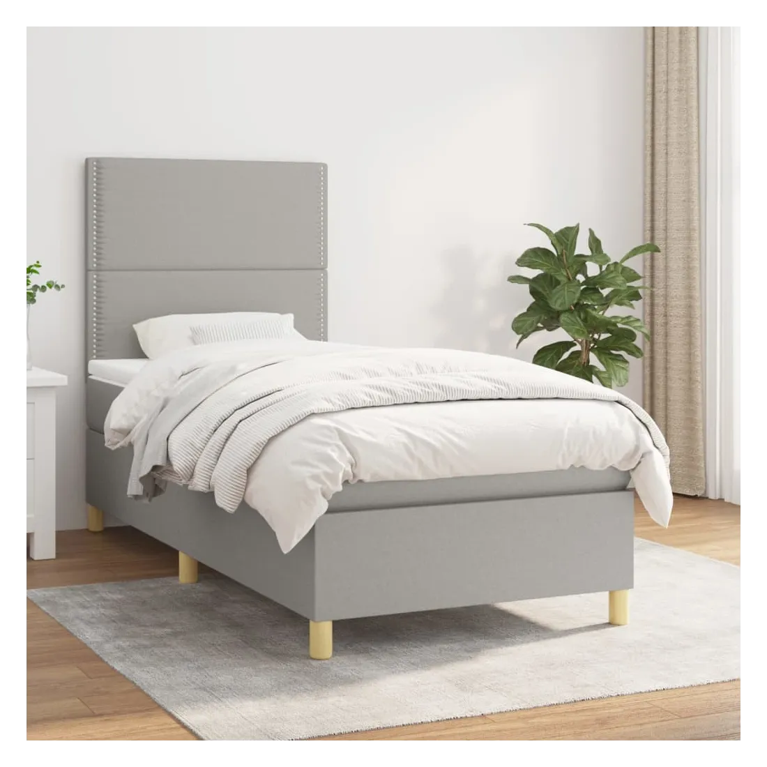 Sommier à lattes de lit avec matelas Gris clair 90x200 cm Tissu