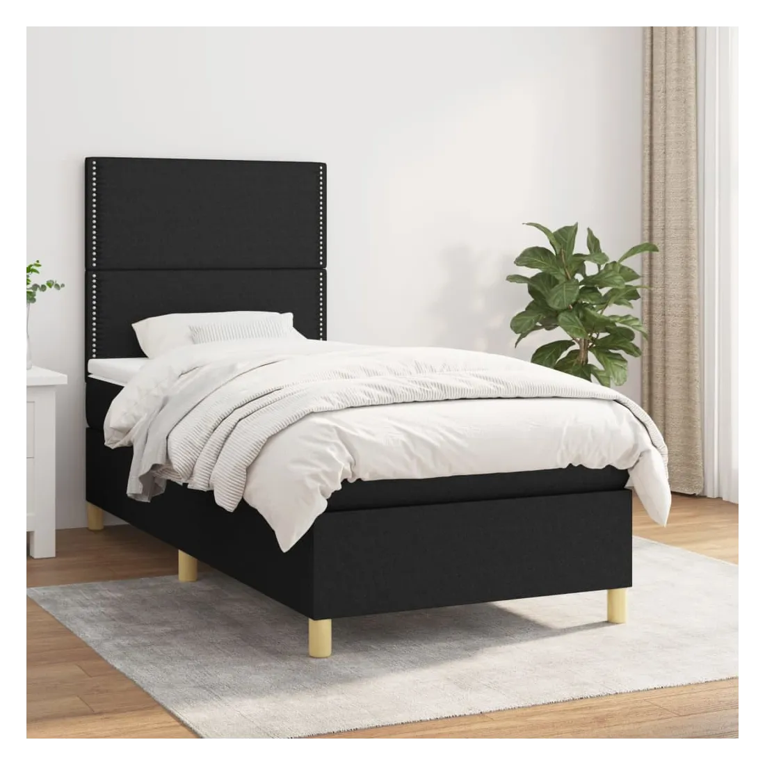 Sommier à lattes de lit avec matelas Noir 100x200 cm Tissu