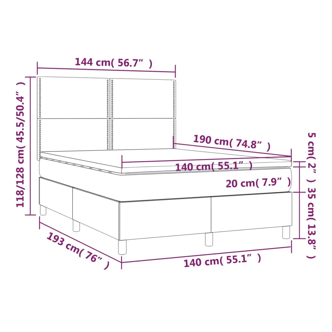 - Dimensions : 140 x 190 x 20 cm (l x L x H)