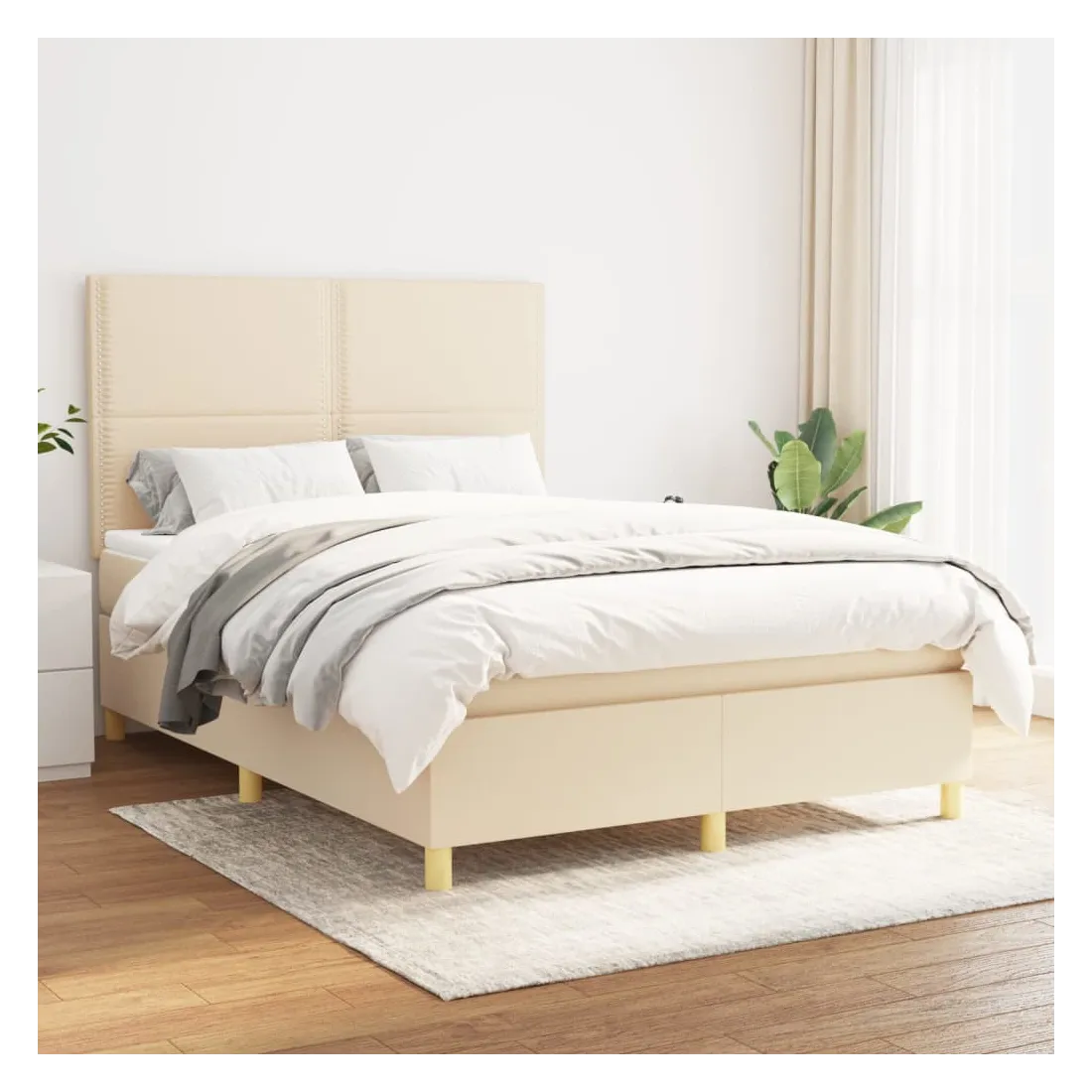 Sommier à lattes de lit avec matelas Crème 140x200 cm Tissu