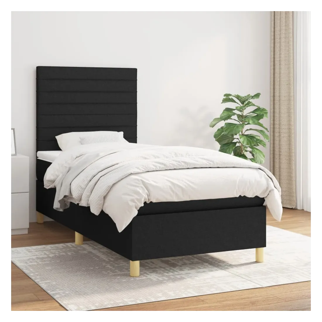 Sommier à lattes de lit et matelas Noir 80x200 cm Tissu