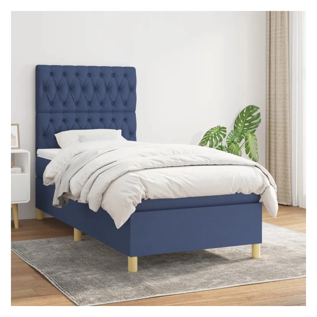 Sommier à lattes de lit avec matelas Bleu 90x200 cm Tissu