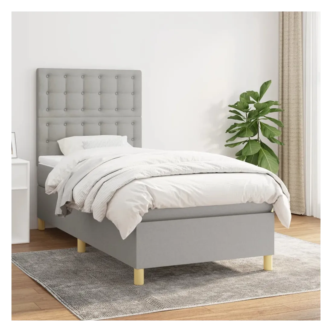 Sommier à lattes de lit avec matelas Gris clair 90x200 cm Tissu