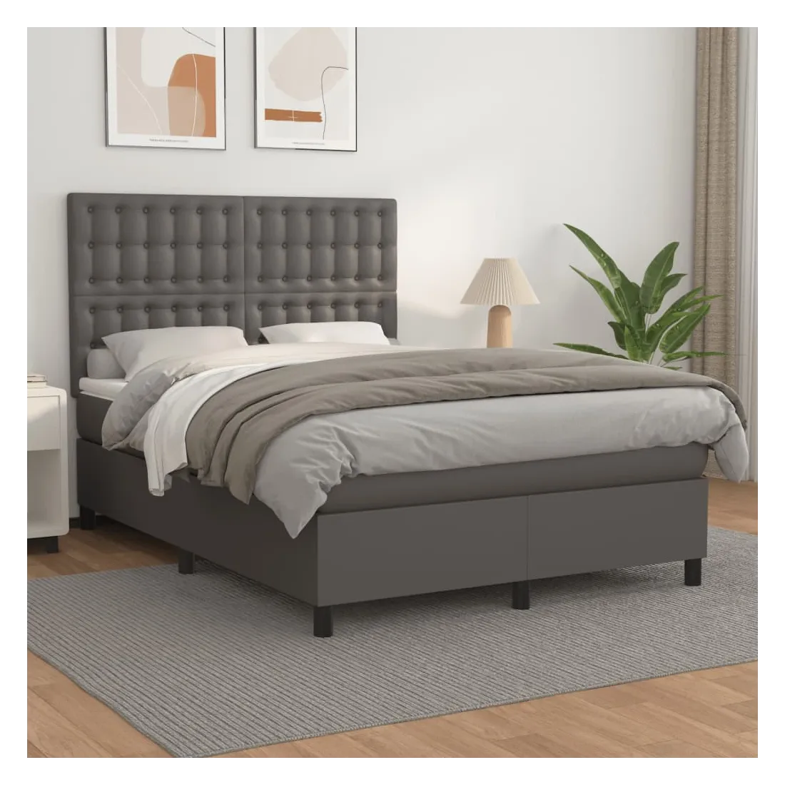 Sommier à lattes de lit avec matelas Gris 140x200 cm Similicuir