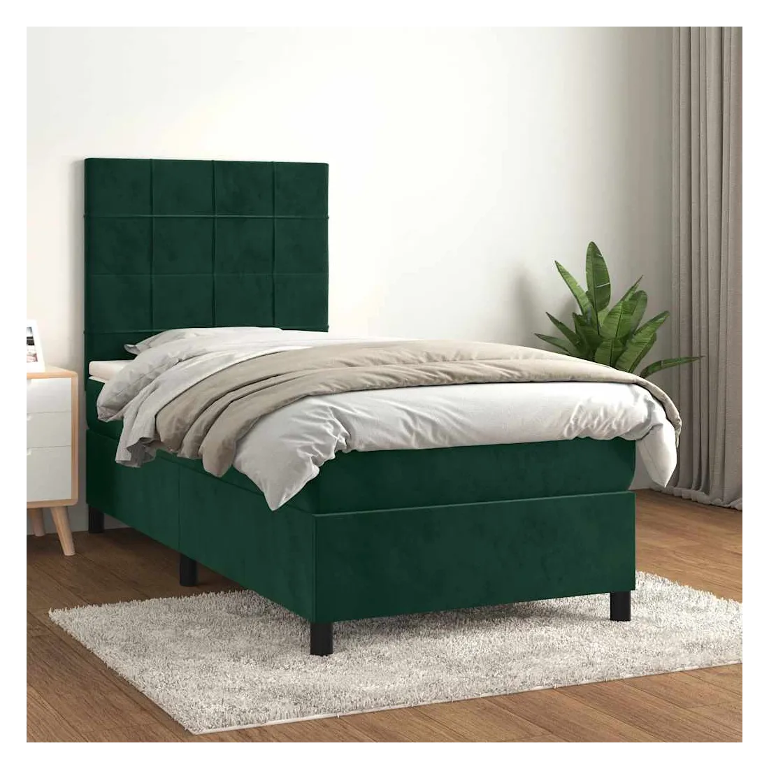 Sommier à lattes de lit avec matelas Vert foncé 90x200 cm