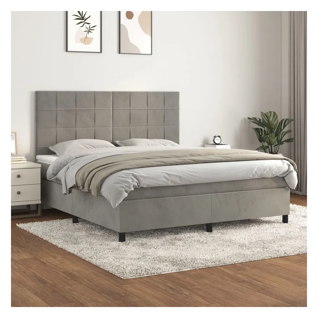 Utilisez ce lit à sommier pour profiter d'une nuit de sommeil réparatrice ! Il vous offre une relaxation maximale et un sommeil agréable. Velours doux : le velours est un tissu doux et luxueux qui se reconnaît à son tas dense de fibres uniformément coupées qui ont une touche lisse. Le tissu en velours présente un toucher doux distinctif, ce qui le rend confortable au toucher.Tête de lit pratique : la tête de lit est réglable en hauteur selon vos préférences. La tête de lit vous offre un excellent soutien du dos lorsque vous êtes assis dans votre lit pour lire ou regarder la télévision.Matelas à ressorts ensachés : le ressort ensaché individuel intégré est connu pour sa très haute qualité tout en assurant un haut niveau de durabilité et d'adaptabilité. Il peut absorber efficacement le bruit et les chocs causés par les sauts et les rotations.Support moyen-dur : ce matelas de lit offre une stabilité accrue et juste le niveau de fermeté sans sacrifier le confort. Il est donc idéal pour les personnes qui dorment sur le dos ou sur le ventre.Protège-matelas doux pour la peau : le protège-matelas est recouvert d'un tissu résistant et doux pour la peau, ce qui le rend souple et confortable. Remarque :Pour des raisons d'hygiène, le matelas ne peut pas être retourné si l'emballage est retiré ou ouvert.Chaque produit est livré avec un manuel de montage dans la boîte pour un montage facile.