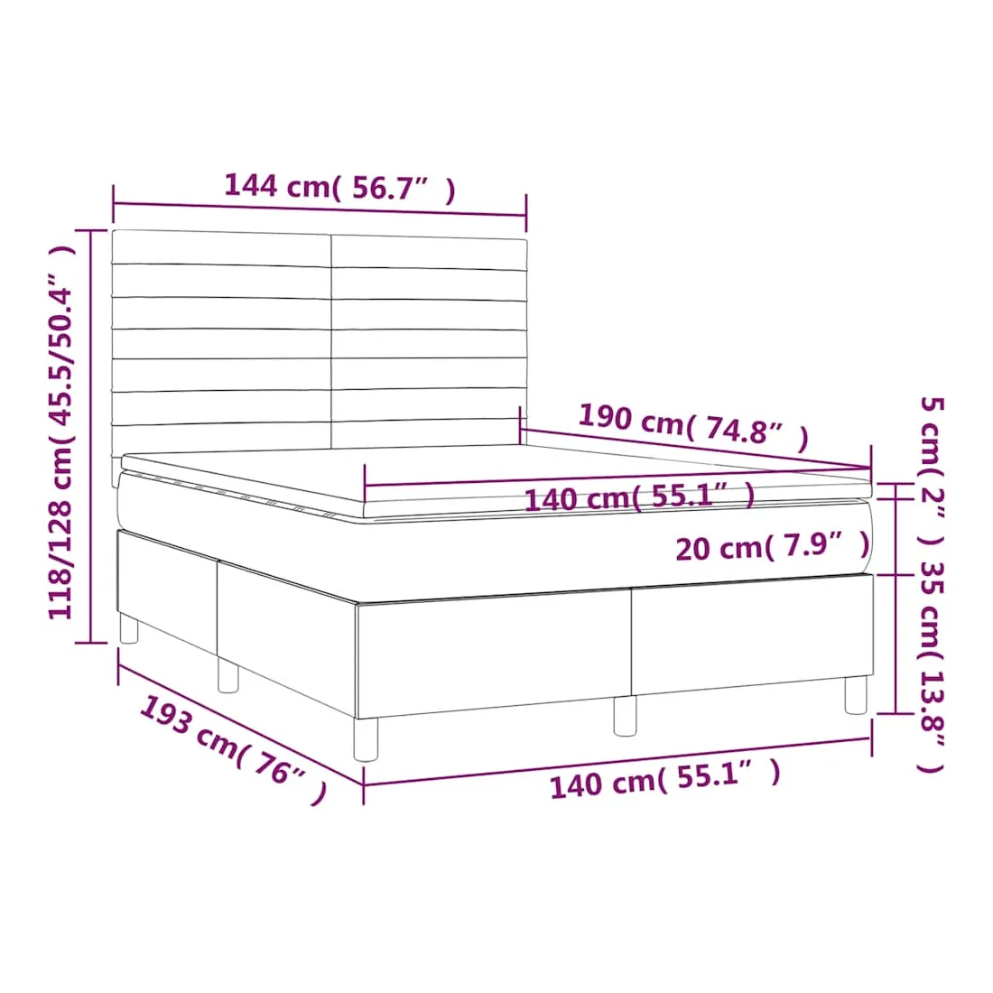 - Dimensions : 140 x 190 x 20 cm (l x L x H)