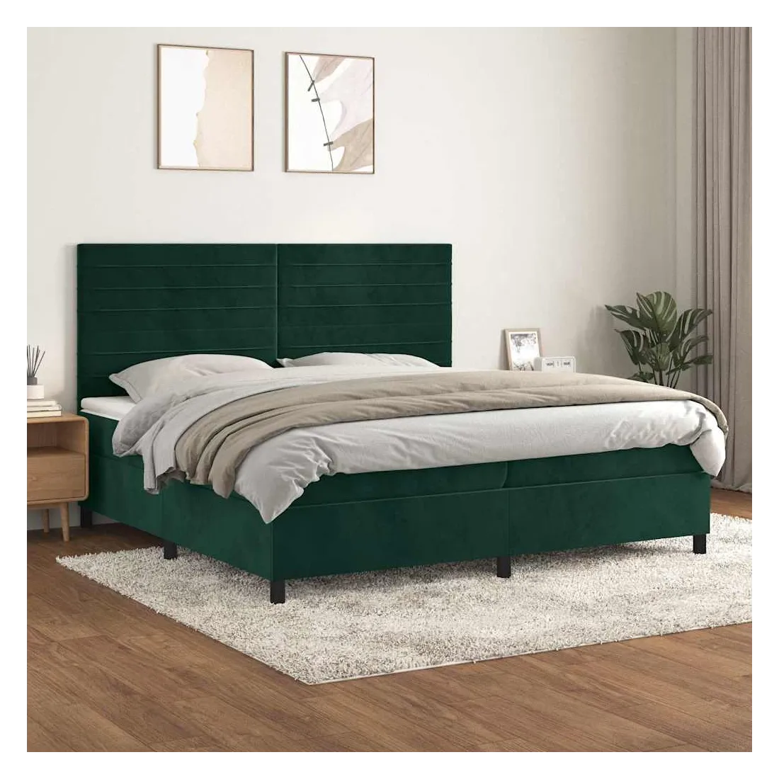 Sommier à lattes de lit et matelas Vert foncé 200x200cm Velours