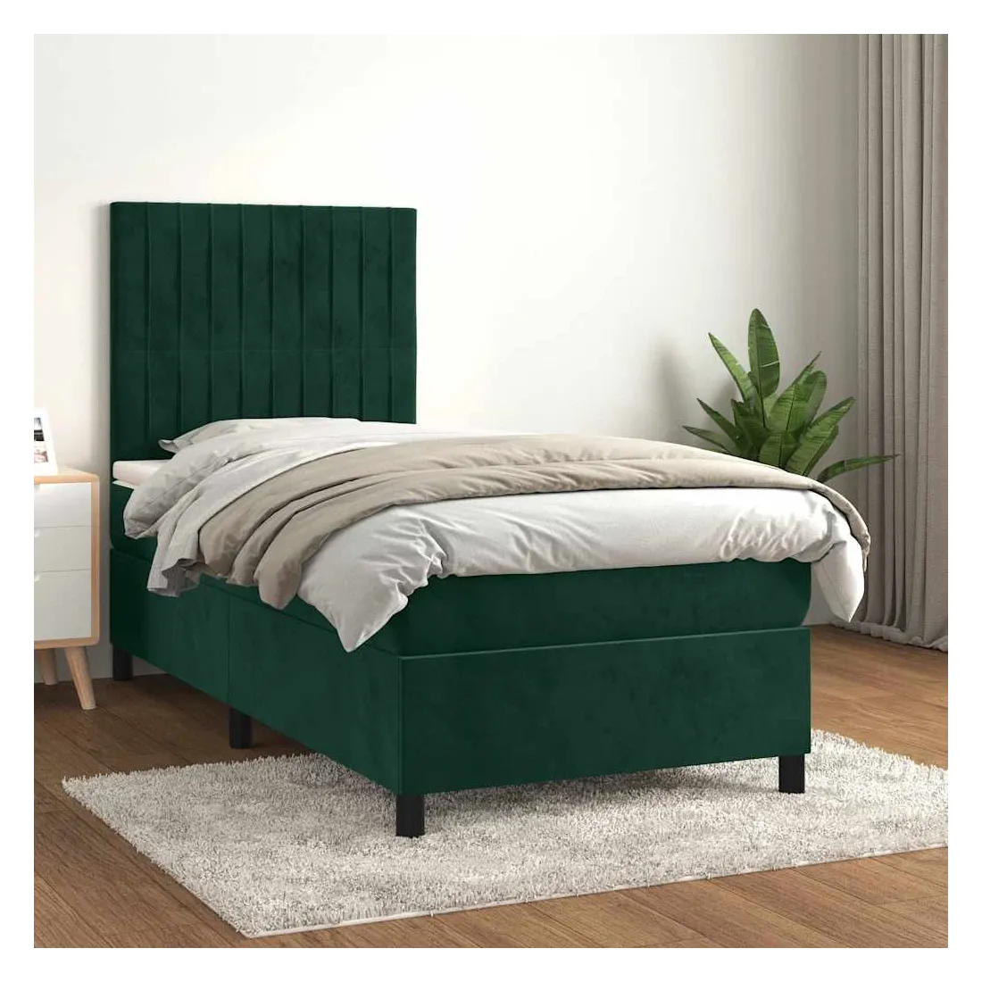 Utilisez ce lit à sommier pour profiter d'une nuit de sommeil réparatrice ! Il vous offre une relaxation maximale et un sommeil agréable. Velours doux : le velours est un tissu doux et luxueux qui se reconnaît à son tas dense de fibres uniformément coupées qui ont une touche lisse. Le tissu en velours présente un toucher doux distinctif, ce qui le rend confortable au toucher.Tête de lit pratique : la tête de lit est réglable en hauteur selon vos préférences. La tête de lit vous offre un excellent soutien du dos lorsque vous êtes assis dans votre lit pour lire ou regarder la télévision.Matelas à ressorts ensachés : le ressort ensaché individuel intégré est connu pour sa très haute qualité tout en assurant un haut niveau de durabilité et d'adaptabilité. Il peut absorber efficacement le bruit et les chocs causés par les sauts et les rotations.Support moyen-dur : ce matelas de lit offre une stabilité accrue et juste le niveau de fermeté sans sacrifier le confort. Il est donc idéal pour les personnes qui dorment sur le dos ou sur le ventre.Protège-matelas doux pour la peau : le protège-matelas est recouvert d'un tissu résistant et doux pour la peau, ce qui le rend souple et confortable. Remarque :Pour des raisons d'hygiène, le matelas ne peut pas être retourné si l'emballage est retiré ou ouvert.Chaque produit est livré avec un manuel de montage dans la boîte pour un montage facile.