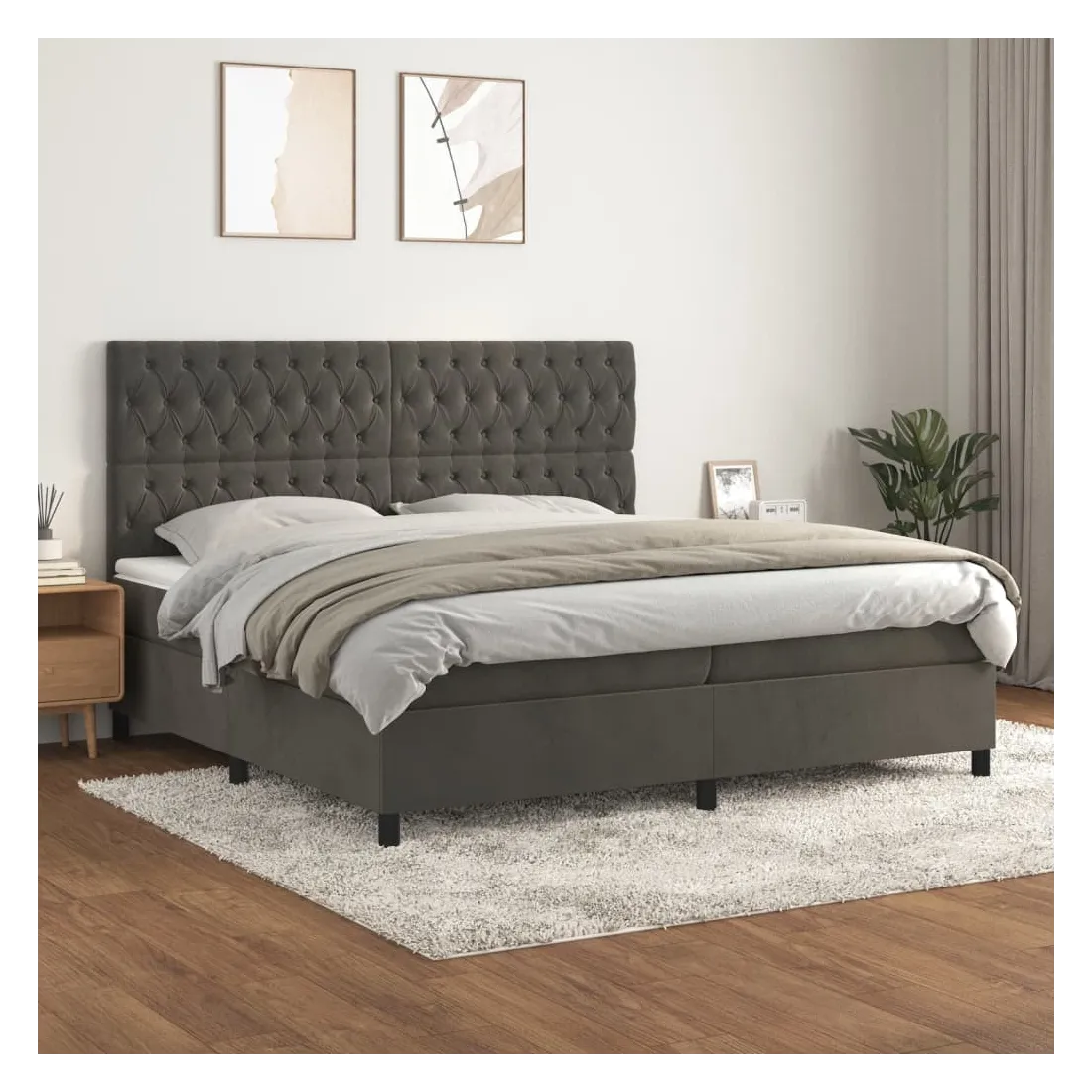 Utilisez ce lit à sommier pour profiter d'une nuit de sommeil réparatrice ! Il vous offre une relaxation maximale et un sommeil agréable. Velours doux : le velours est un tissu doux et luxueux qui se reconnaît à son tas dense de fibres uniformément coupées qui ont une touche lisse. Le tissu en velours présente un toucher doux distinctif, ce qui le rend confortable au toucher.Tête de lit pratique : la tête de lit est réglable en hauteur selon vos préférences. La tête de lit vous offre un excellent soutien du dos lorsque vous êtes assis dans votre lit pour lire ou regarder la télévision.Matelas à ressorts ensachés : le ressort ensaché individuel intégré est connu pour sa très haute qualité tout en assurant un haut niveau de durabilité et d'adaptabilité. Il peut absorber efficacement le bruit et les chocs causés par les sauts et les rotations.Support moyen-dur : ce matelas de lit offre une stabilité accrue et juste le niveau de fermeté sans sacrifier le confort. Il est donc idéal pour les personnes qui dorment sur le dos ou sur le ventre.Protège-matelas doux pour la peau : le protège-matelas est recouvert d'un tissu résistant et doux pour la peau, ce qui le rend souple et confortable. Remarque :Pour des raisons d'hygiène, le matelas ne peut pas être retourné si l'emballage est retiré ou ouvert.Chaque produit est livré avec un manuel de montage dans la boîte pour un montage facile.
