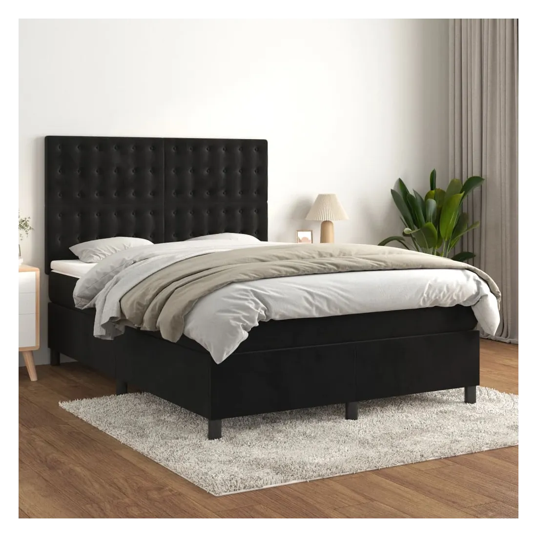 Sommier à lattes de lit avec matelas Noir 140x200 cm Velours