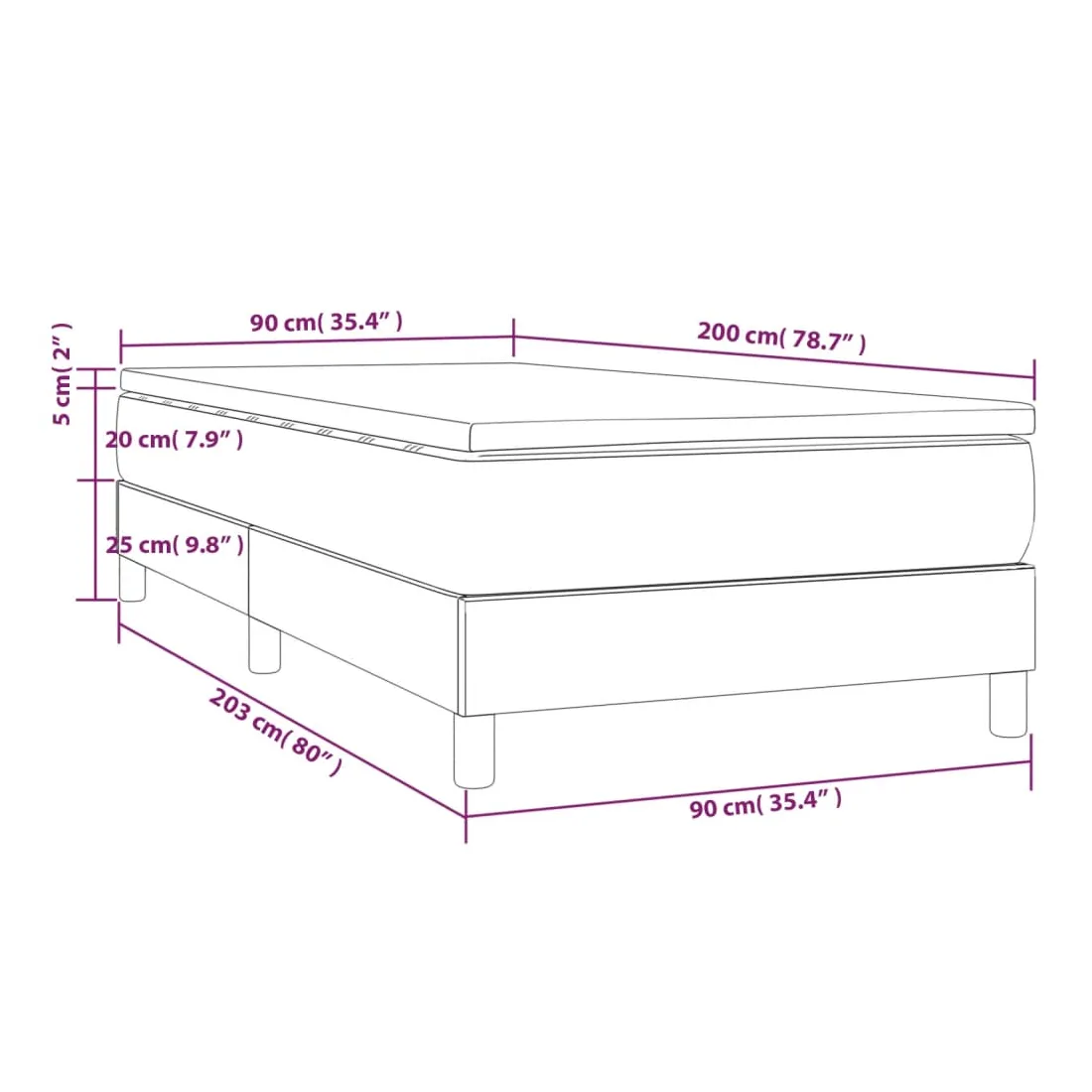 • Dimensions : 203 x 90 x 25 cm (L x l x H)