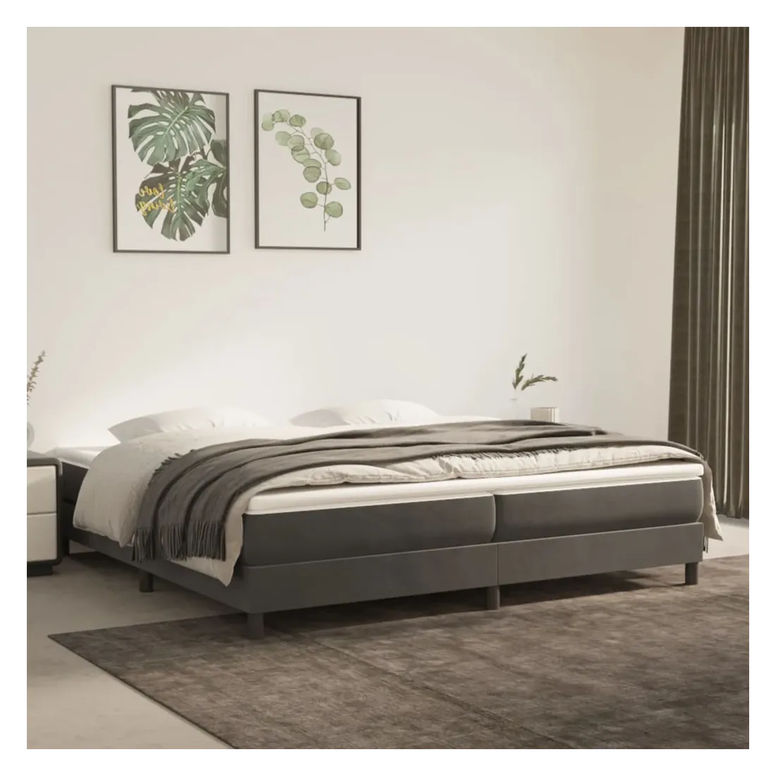 Utilisez ce lit à sommier pour profiter d'une nuit de sommeil réparatrice ! Il vous offre une relaxation maximale et un sommeil agréable. Velours doux : le velours est un tissu doux et luxueux qui se reconnaît à son tas dense de fibres uniformément coupées qui ont une touche lisse. Le tissu en velours présente un toucher doux distinctif, ce qui le rend confortable au toucher.Matelas à ressorts ensachés : le ressort ensaché individuel intégré est connu pour sa très haute qualité tout en assurant un haut niveau de durabilité et d'adaptabilité. Il peut absorber efficacement le bruit et les chocs causés par les sauts et les rotations.Support moyen-dur : ce matelas de lit offre une stabilité accrue et juste le niveau de fermeté sans sacrifier le confort. Il est donc idéal pour les personnes qui dorment sur le dos ou sur le ventre.Protège-matelas doux pour la peau : le protège-matelas est recouvert d'un tissu résistant et doux pour la peau, ce qui le rend souple et confortable.Lattes en contreplaqué : le lit est équipé de lattes en contreplaqué, qui assurent une bonne répartition du poids, garantissant que le matelas reste en place à chaque torsion de votre corps pendant le sommeil. Remarque :Pour des raisons d'hygiène, le matelas ne peut pas être retourné si l'emballage est retiré ou ouvert.Chaque produit est livré avec un manuel de montage dans la boîte pour un montage facile.