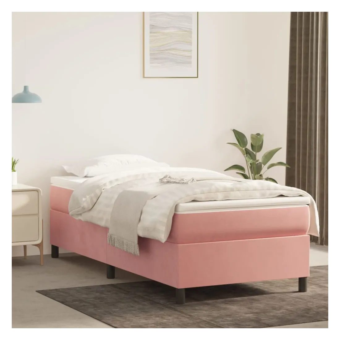 Utilisez ce lit à sommier pour profiter d'une nuit de sommeil réparatrice ! Il vous offre une relaxation maximale et un sommeil agréable. Velours doux : le velours est un tissu doux et luxueux qui se reconnaît à son tas dense de fibres uniformément coupées qui ont une touche lisse. Le tissu en velours présente un toucher doux distinctif, ce qui le rend confortable au toucher.Matelas à ressorts ensachés : le ressort ensaché individuel intégré est connu pour sa très haute qualité tout en assurant un haut niveau de durabilité et d'adaptabilité. Il peut absorber efficacement le bruit et les chocs causés par les sauts et les rotations.Support moyen-dur : ce matelas de lit offre une stabilité accrue et juste le niveau de fermeté sans sacrifier le confort. Il est donc idéal pour les personnes qui dorment sur le dos ou sur le ventre.Protège-matelas doux pour la peau : le protège-matelas est recouvert d'un tissu résistant et doux pour la peau, ce qui le rend souple et confortable.Lattes en contreplaqué : le lit est équipé de lattes en contreplaqué, qui assurent une bonne répartition du poids, garantissant que le matelas reste en place à chaque torsion de votre corps pendant le sommeil. Remarque :Pour des raisons d'hygiène, le matelas ne peut pas être retourné si l'emballage est retiré ou ouvert.Chaque produit est livré avec un manuel de montage dans la boîte pour un montage facile.