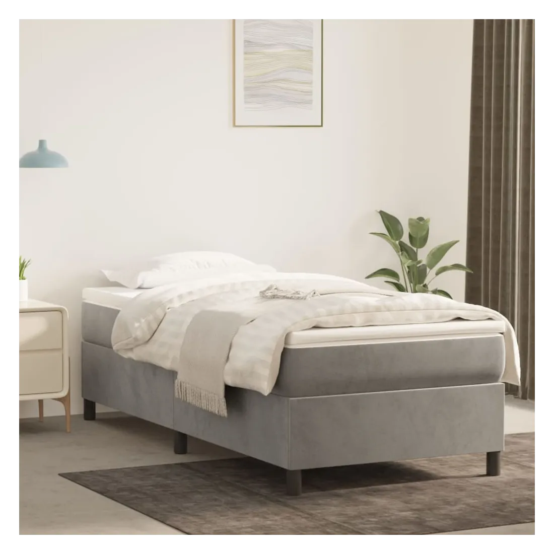 Sommier à lattes de lit et matelas Gris clair 90x200 cm Velours