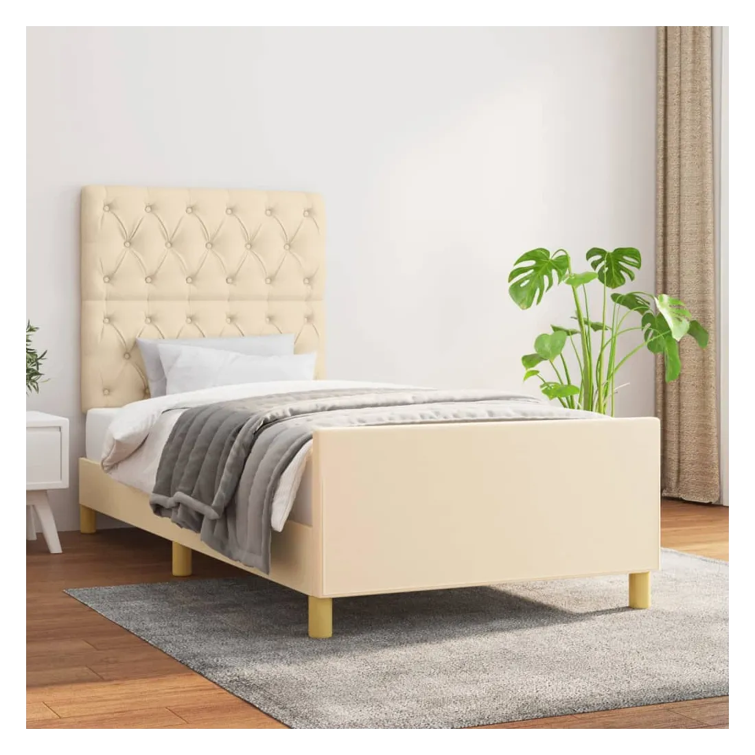 Obtenez une meilleure nuit de sommeil reposante grâce à ce cadre de lit avec tête de lit ! Il est un supplément accueillant à toute chambre à coucher. Tissu durable : le tissu présente un aspect simple et épuré, et il est respirant et durable.Hauteur réglable : la tête de lit est réglable en hauteur selon vos préférences.Pieds de soutien : le lit est soutenu par des pieds robustes, qui assurent sa stabilité, sa sécurité et sa fermeté.Lattes de contreplaqué : les lattes de contreplaqué assurent une bonne répartition du poids, garantissant que le matelas reste en place à chaque torsion de votre corps pendant le sommeil.Excellent soutien : la tête de lit vous offre un excellent soutien du dos lorsque vous êtes assis dans votre lit pour lire ou regarder la télévision. Remarque :La livraison comprend uniquement un cadre de lit. Le matelas n'est pas inclus. Vous pouvez consulter notre boutique pour trouver les matelas assortis.Chaque produit est livré avec un manuel de montage dans la boîte pour un montage facile.
