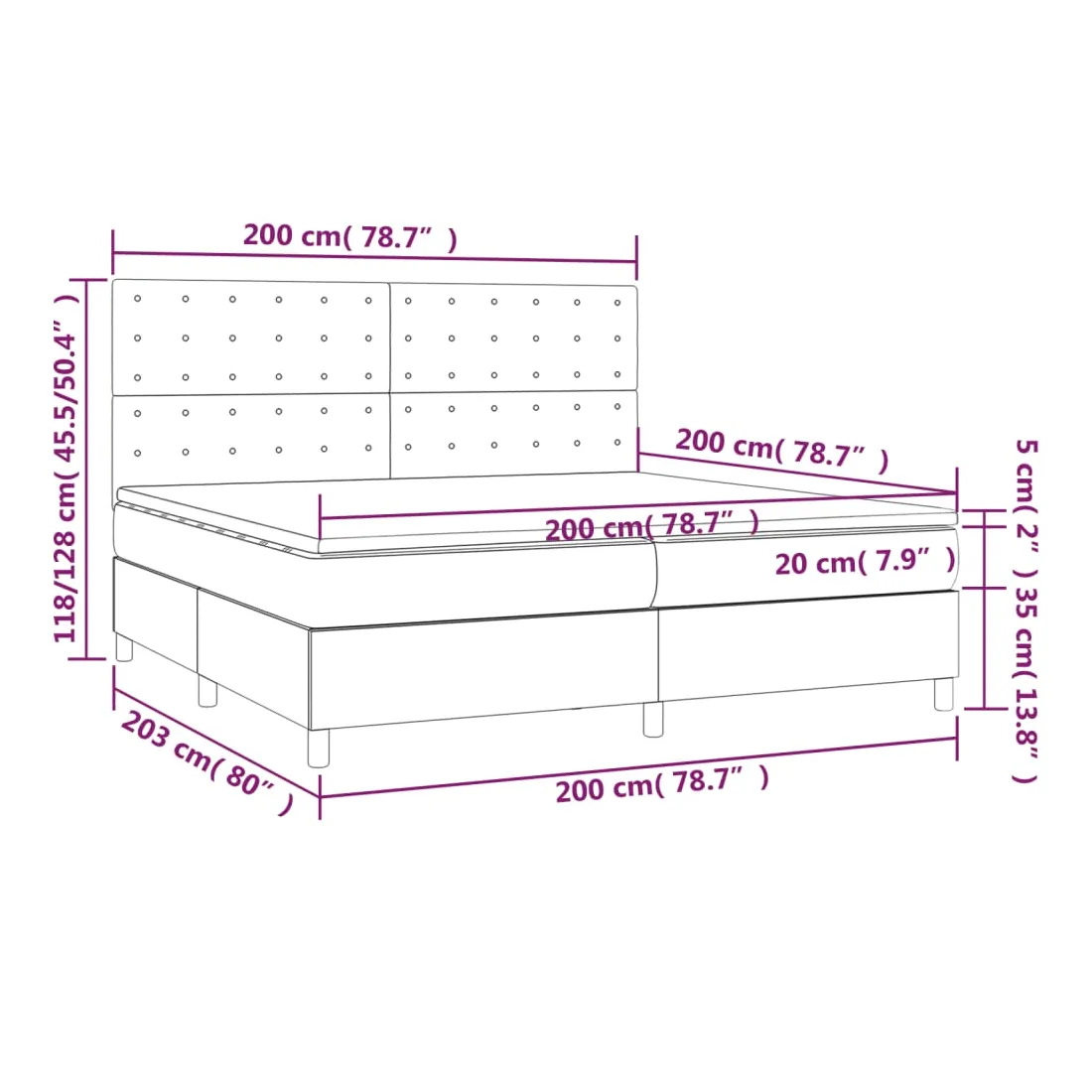 Utilisez ce sommier tapissier avec matelas et LED pour profiter d'un sommeil réparateur ! C'est le point central de votre chambre à coucher. Velours doux : le velours est un tissu doux et luxueux qui se reconnaît à son tas dense de fibres uniformément coupées qui ont une touche lisse. Le tissu en velours présente un toucher doux distinctif, ce qui le rend confortable au toucher.Tête de lit pratique : la tête de lit est réglable en hauteur selon vos préférences. La tête de lit vous offre un excellent soutien du dos lorsque vous êtes assis dans votre lit pour lire ou regarder la télévision.Bande LED colorée : apportez de l'éclairage dans l'obscurité avec des lumières LED colorées !Matelas à ressorts ensachés : le ressort ensaché individuel intégré est connu pour sa très haute qualité tout en assurant un haut niveau de durabilité et d'adaptabilité. Il peut absorber efficacement le bruit et les chocs causés par les sauts et les rotations.Protège-matelas doux pour la peau : le protège-matelas est recouvert d'un tissu résistant et doux pour la peau, ce qui le rend souple et confortable. Remarque :Pour des raisons d'hygiène, le matelas ne peut pas être retourné si l'emballage est retiré ou ouvert.Seule la partie avec un symbole de ciseaux peut être coupée et seule la partie avec l'USB continuera à fonctionner comme avant.Chaque produit est livré avec un manuel de montage dans la boîte pour un montage facile.Ce produit est doté d'un connecteur USB, mais la source d'alimentation certifiée de USB 5V n'est pas incluse.