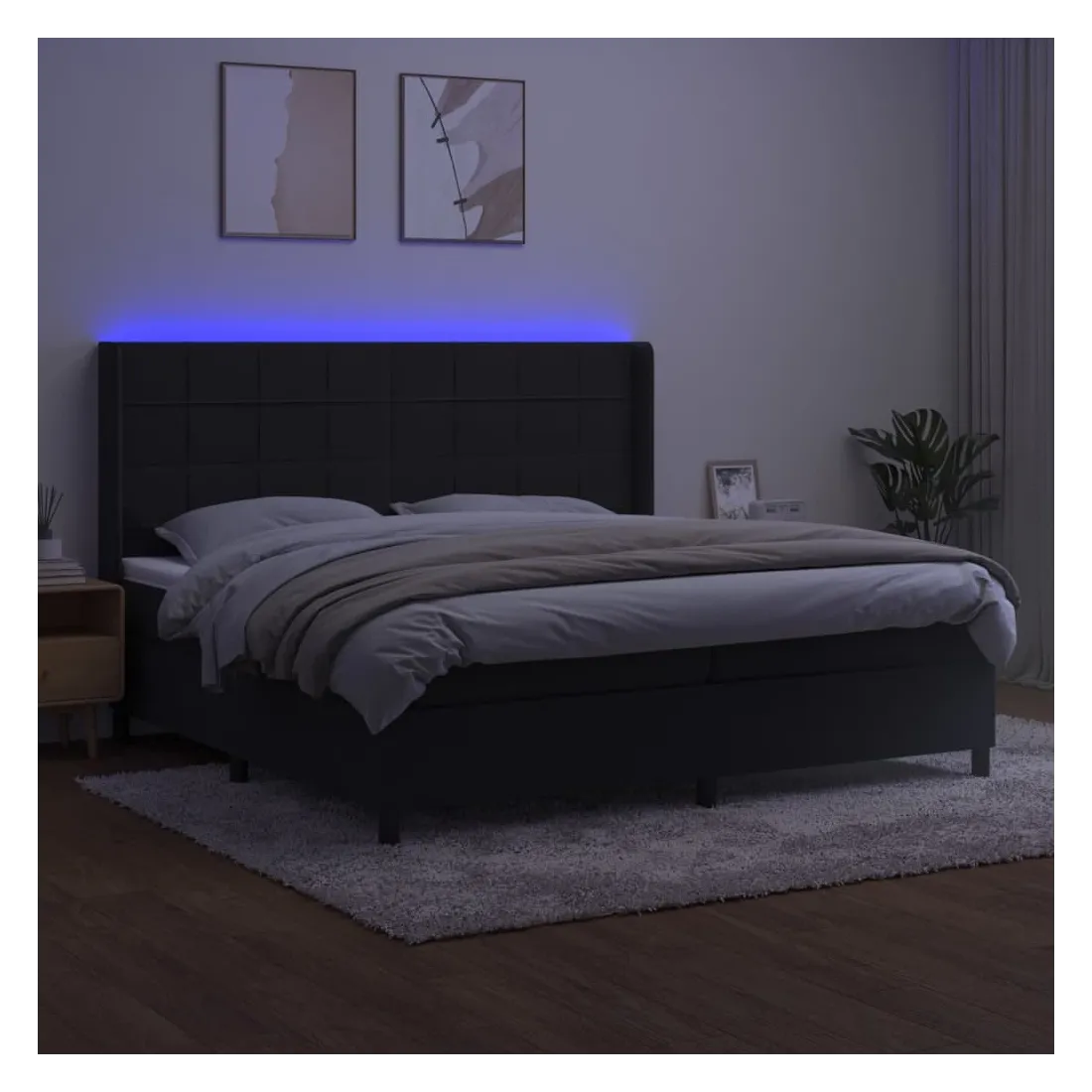 Utilisez ce sommier tapissier avec matelas et LED pour profiter d'un sommeil réparateur ! C'est le point central de votre chambre à coucher. Velours doux : le velours est un tissu doux et luxueux qui se reconnaît à son tas dense de fibres uniformément coupées qui ont une touche lisse. Le tissu en velours présente un toucher doux distinctif, ce qui le rend confortable au toucher.Tête de lit pratique : la tête de lit est réglable en hauteur selon vos préférences. La tête de lit vous offre un excellent soutien du dos lorsque vous êtes assis dans votre lit pour lire ou regarder la télévision.Bande LED colorée : apportez de l'éclairage dans l'obscurité avec des lumières LED colorées !Matelas à ressorts ensachés : le ressort ensaché individuel intégré est connu pour sa très haute qualité tout en assurant un haut niveau de durabilité et d'adaptabilité. Il peut absorber efficacement le bruit et les chocs causés par les sauts et les rotations.Protège-matelas doux pour la peau : le protège-matelas est recouvert d'un tissu résistant et doux pour la peau, ce qui le rend souple et confortable. Remarque :Pour des raisons d'hygiène, le matelas ne peut pas être retourné si l'emballage est retiré ou ouvert.Seule la partie avec un symbole de ciseaux peut être coupée et seule la partie avec l'USB continuera à fonctionner comme avant.Chaque produit est livré avec un manuel de montage dans la boîte pour un montage facile.Ce produit est doté d'un connecteur USB, mais la source d'alimentation certifiée de USB 5V n'est pas incluse.