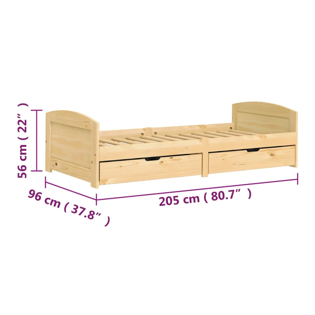 Ce lit de jour polyvalent en bois peut être utilisé comme un lit dans la chambre à coucher et est également idéal comme un canapé dans le salon. Il s'adapte parfaitement à vos différents besoins, vous offrant beaucoup d'espace pour dormir et vous reposer. Bois de pin massif : le bois de pin massif est un matériau naturel magnifique. Le bois de pin a un grain droit et les nœuds donnent au matériau son aspect caractéristique et rustique. Le lit d'appoint est en bois de pin massif, plus stable et durable.Design à lattes : le sommier à lattes en bois permet une meilleure circulation de l'air pour garder le matelas frais plus longtemps, améliorant la capacité de poids du lit et assurant la stabilité.Canapé-lit multifonctionnel : ce lit de jour en bois peut être utilisé comme canapé pendant la journée ou comme lit la nuit, offrant une solution rapide pour accueillir des invités pour la nuit.Espace de rangement supplémentaire : profitez de l'espace sous le canapé pour ranger divers objets. Parfait pour ranger vos vêtements, chaussures, jouets ou couettes. Bon à savoir :Un matelas n'est pas inclus avec ce lit. Nous offrons une sélection variée de matelas. Vous pouvez consulter notre boutique pour trouver un matelas assorti.