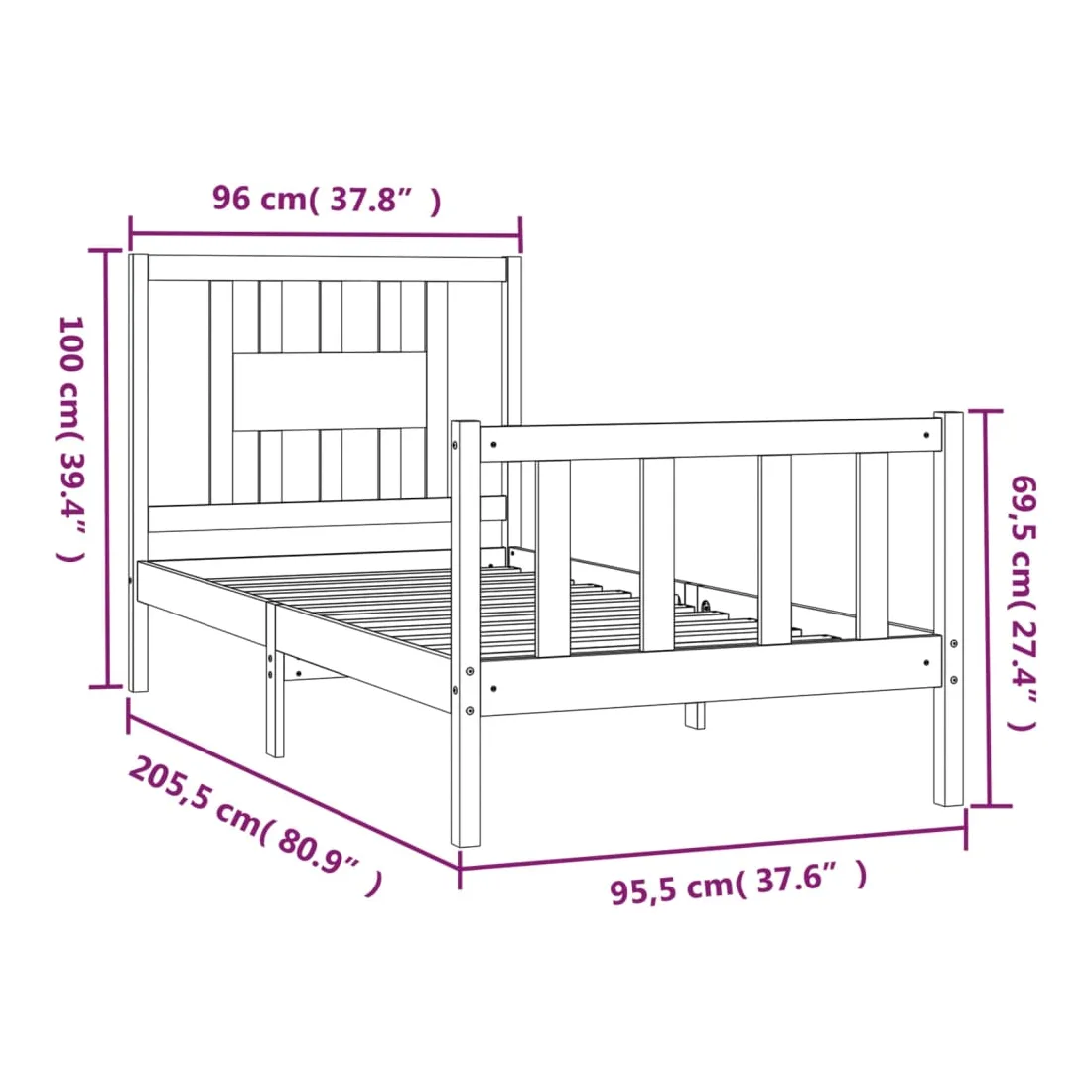 - Dimensions du cadre de lit : 205,5 x 95,5 x 69,5 cm (L x l x H)