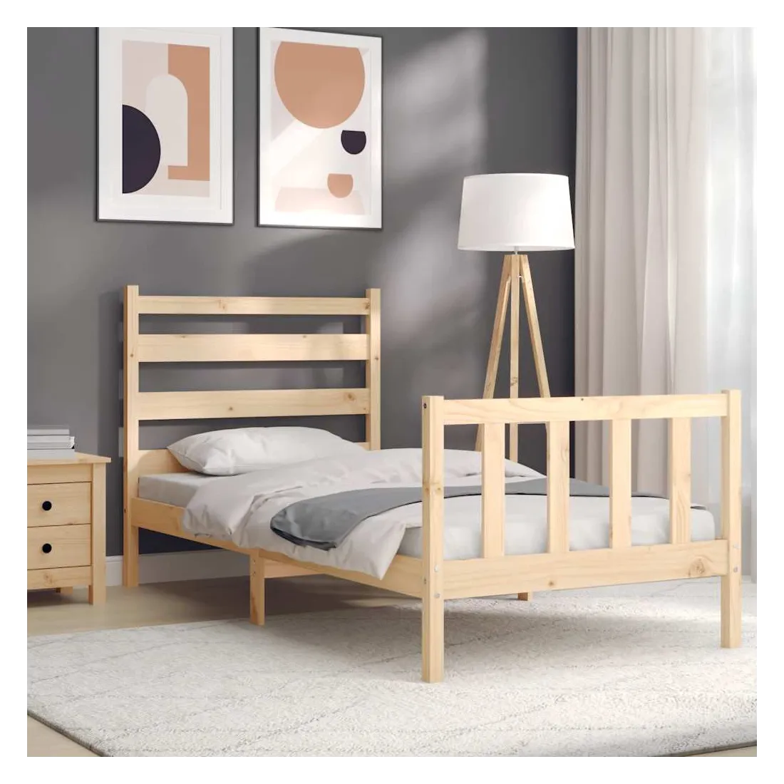 vidaXLProfitez d'une bonne nuit de sommeil dans ce cadre de lit en bois ! Il sera un supplément pratique et décoratif à votre intérieur. Matériau durable : le bois de pin massif est un matériau naturel magnifique. Le bois de pin a un grain droit et les nœuds donnent au matériau son aspect caractéristique et rustique. Fabriqué en pin massif, ce lit est robuste et durable.Lattes en contreplaqué : les lattes en contreplaqué assurent une bonne répartition du poids, garantissant à votre matelas le soutien et la respirabilité dont il a tant besoin.Tête de lit et pied de lit fonctionnels : la tête et le pied de lit du lit en bois peuvent maintenir votre matelas en place. De plus, la tête de lit vous offre un excellent soutien du dos lorsque vous vous asseyez dans le lit pour lire ou regarder la télévision. Bon à savoir : Un matelas n'est pas inclus avec ce lit. Nous offrons une sélection variée de matelas. Vous pouvez consulter notre boutique pour trouver un matelas assorti.Certaines pièces de tête de lit sont emballées dans les cartons du cadre de lit en raison du manque d’espace.