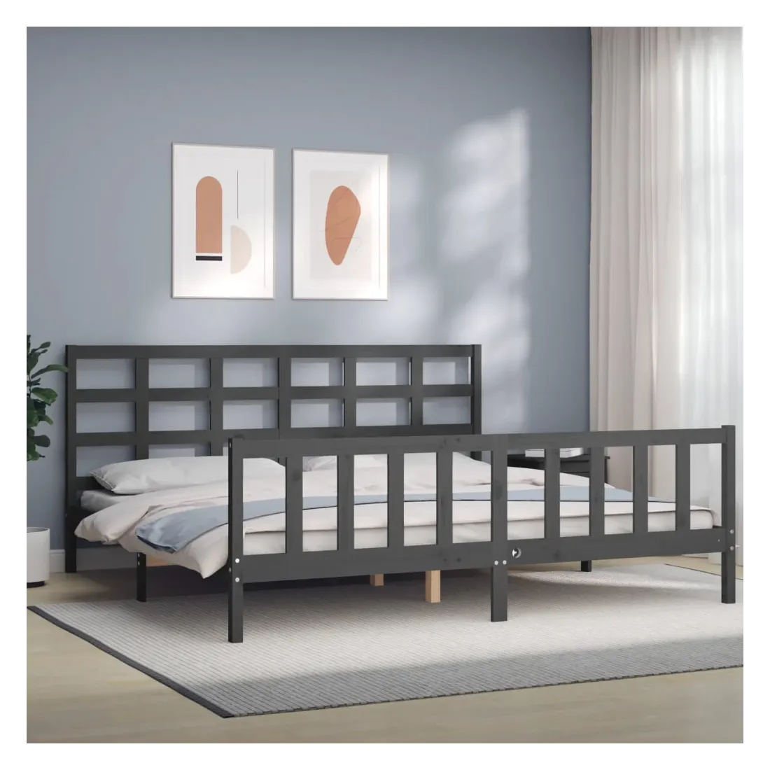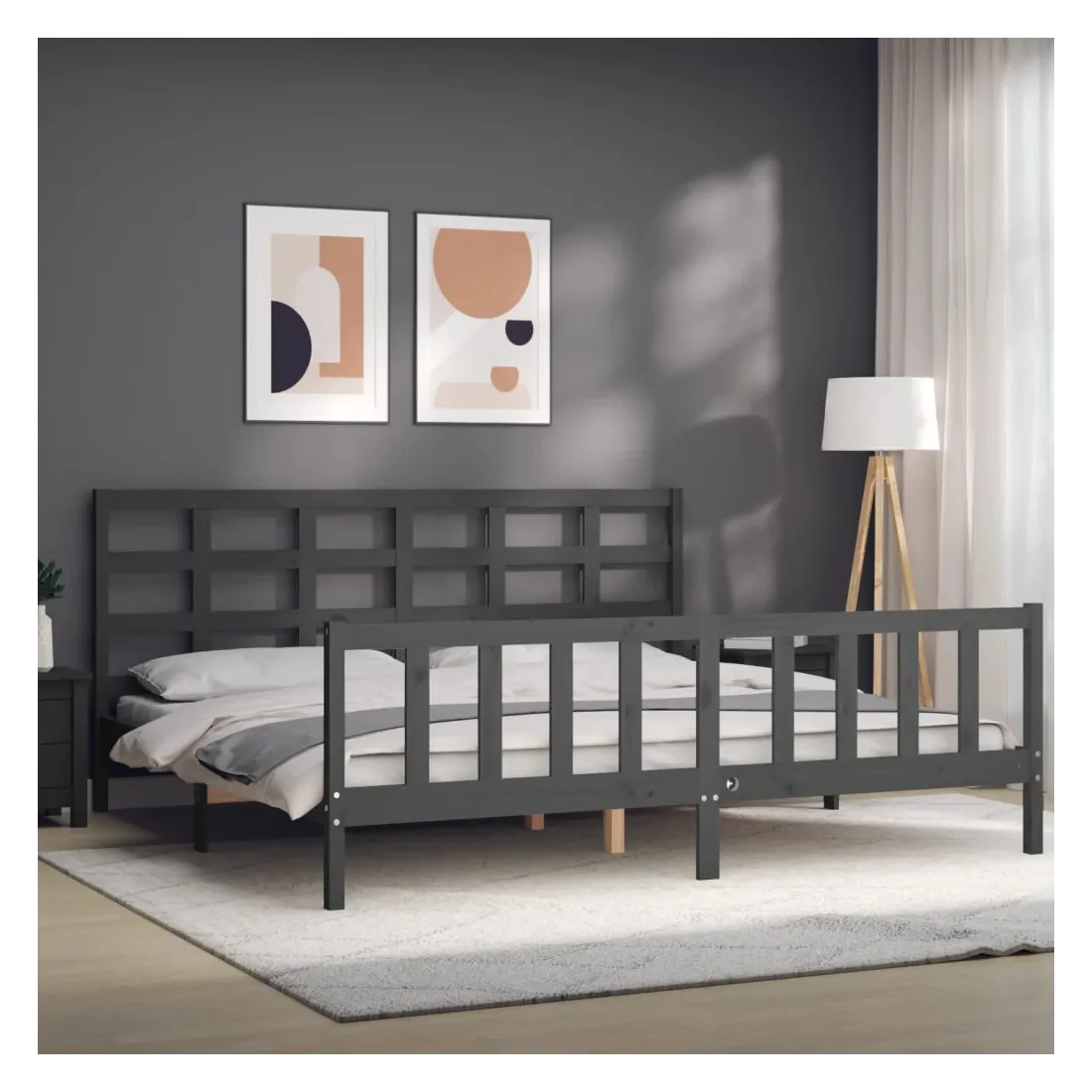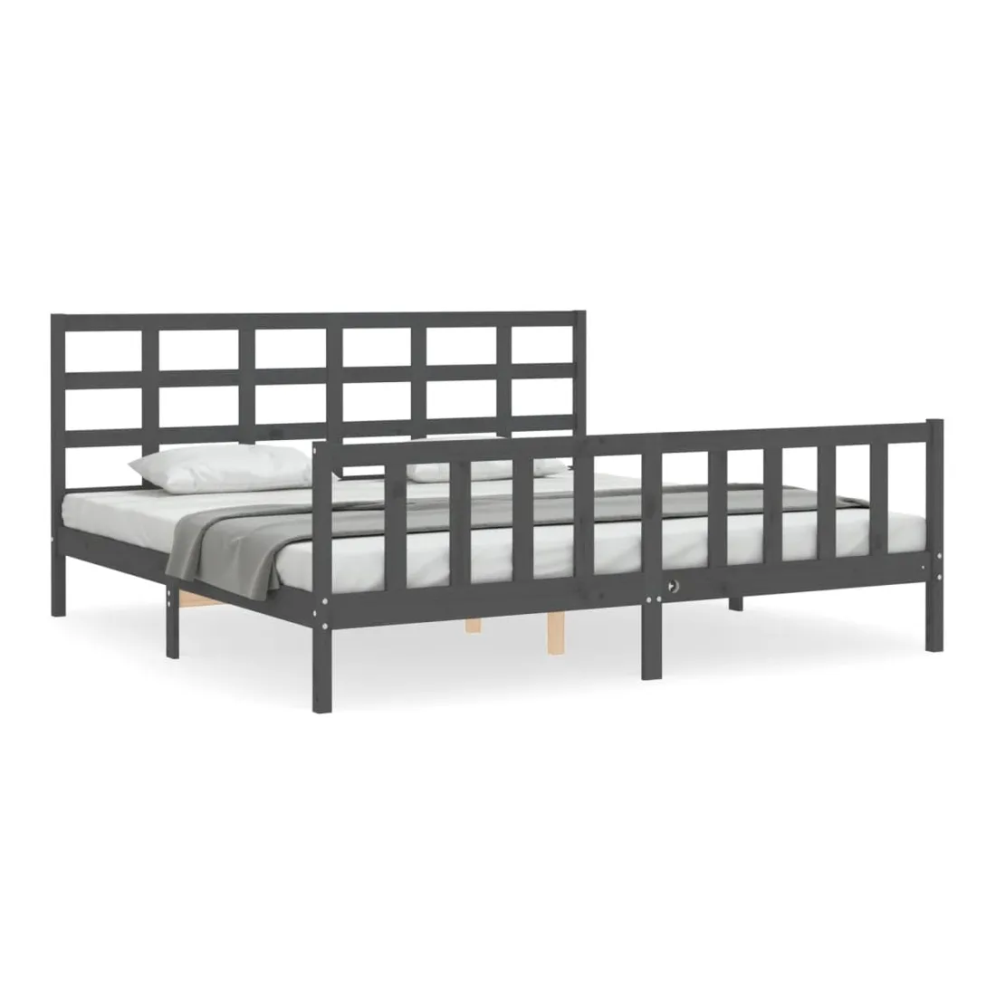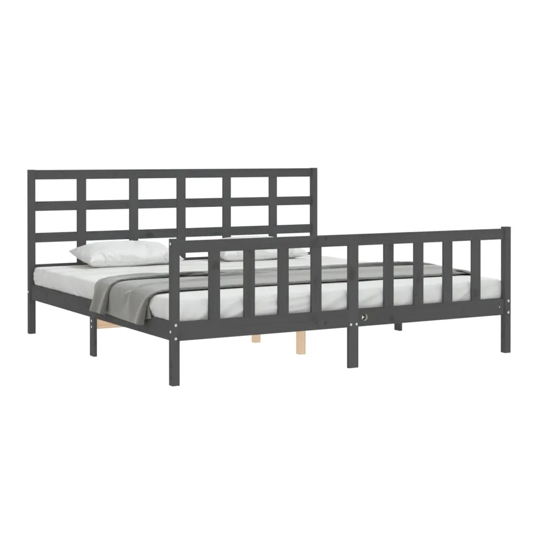 Cadre de lit sans matelas gris 200x200 cm bois massif de pin