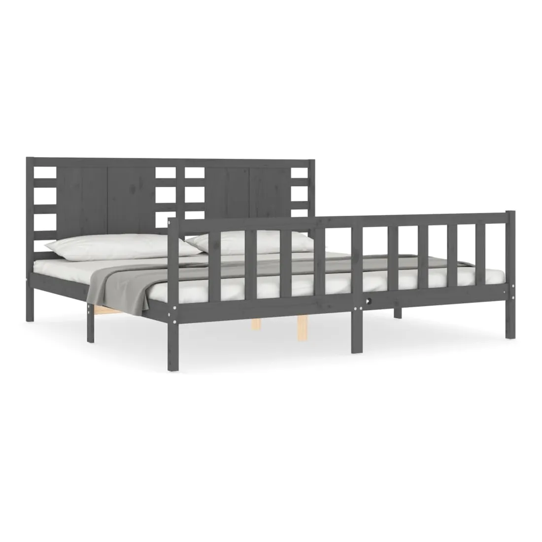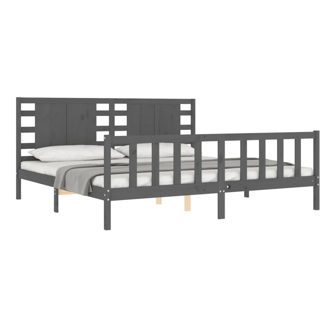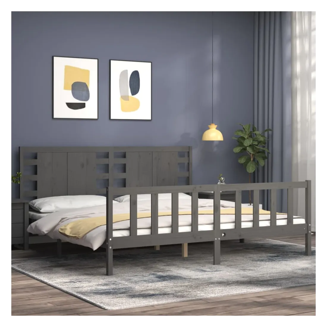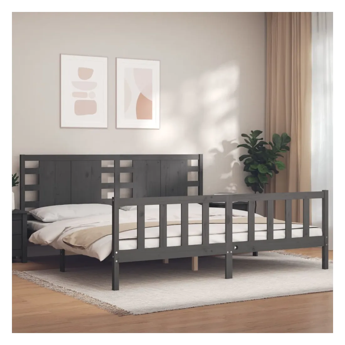 Cadre de lit sans matelas gris 200x200 cm bois massif de pin