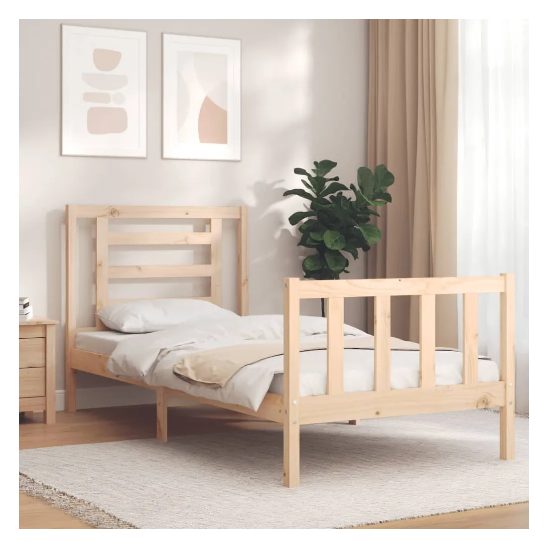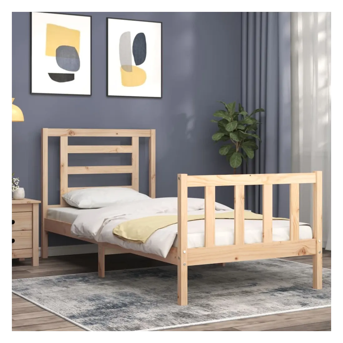 Profitez d'une bonne nuit de sommeil dans ce cadre de lit en bois ! Il sera un supplément pratique et décoratif à votre intérieur. Matériau durable : le bois de pin massif est un matériau naturel magnifique. Le bois de pin a un grain droit et les nœuds donnent au matériau son aspect caractéristique et rustique. Fabriqué en pin massif, ce lit est robuste et durable. Lattes en contreplaqué : les lattes en contreplaqué assurent une bonne répartition du poids, garantissant à votre matelas le soutien et la respirabilité dont il a tant besoin. Tête de lit et pied de lit fonctionnels : la tête et le pied de lit du lit en bois peuvent maintenir votre matelas en place. De plus, la tête de lit vous offre un excellent soutien du dos lorsque vous vous asseyez dans le lit pour lire ou regarder la t
