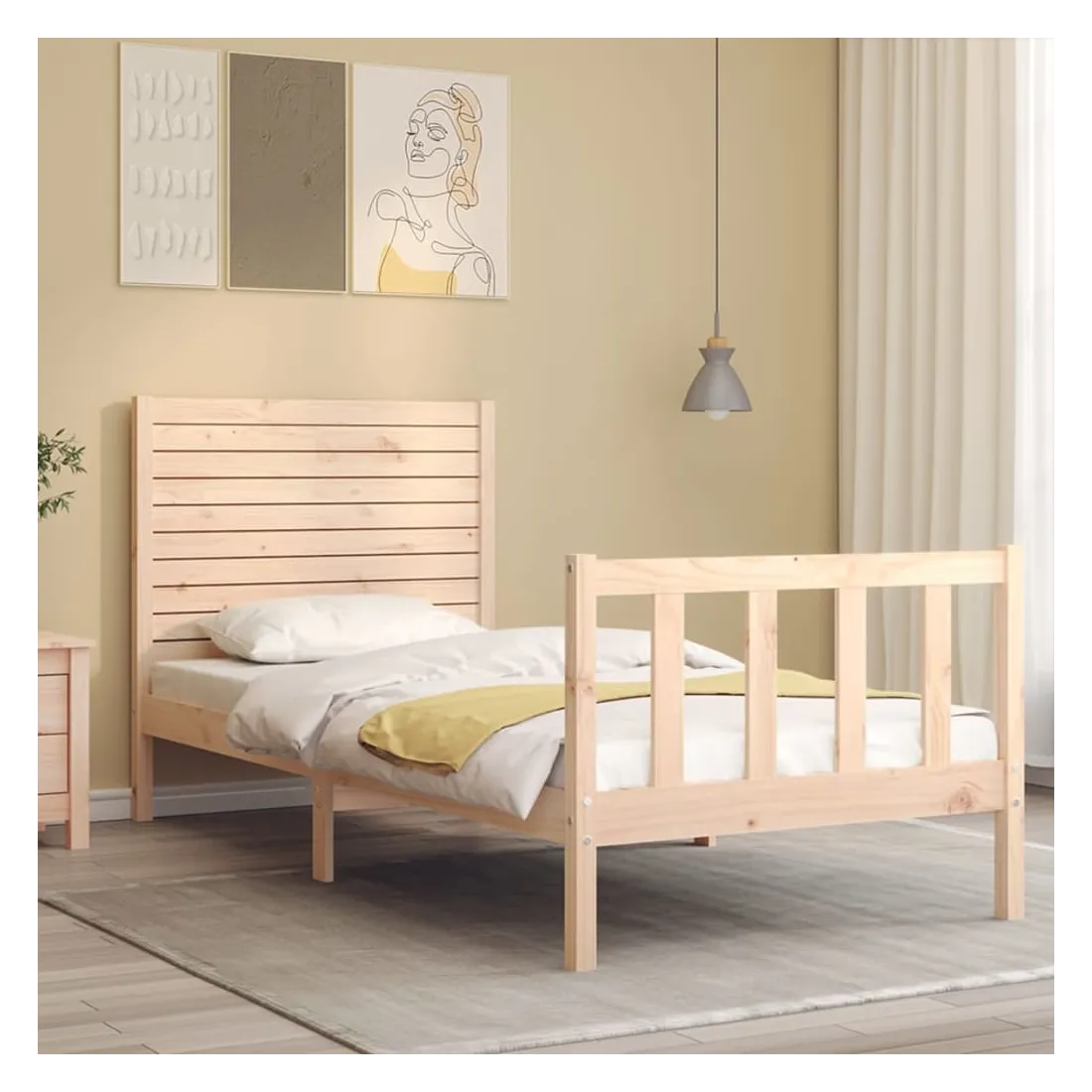 Profitez d'une bonne nuit de sommeil dans ce cadre de lit en bois ! Il sera un supplément pratique et décoratif à votre intérieur. Matériau durable : le bois de pin massif est un matériau naturel magnifique. Le bois de pin a un grain droit et les nœuds donnent au matériau son aspect caractéristique et rustique. Fabriqué en pin massif, ce lit est robuste et durable.Lattes en contreplaqué : les lattes en contreplaqué assurent une bonne répartition du poids, garantissant à votre matelas le soutien et la respirabilité dont il a tant besoin.Tête de lit et pied de lit fonctionnels : la tête et le pied de lit du lit en bois peuvent maintenir votre matelas en place. De plus, la tête de lit vous offre un excellent soutien du dos lorsque vous vous asseyez dans le lit pour lire ou regarder la télévision. Bon à savoir : Un matelas n'est pas inclus avec ce lit. Nous offrons une sélection variée de matelas. Vous pouvez consulter notre boutique pour trouver un matelas assorti.Certaines pièces de tête de lit sont emballées dans les cartons du cadre de lit en raison du manque d’espace.