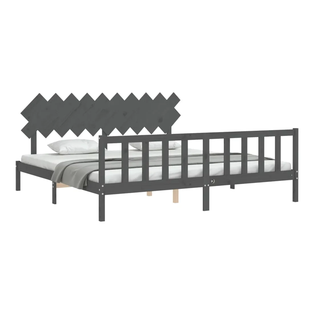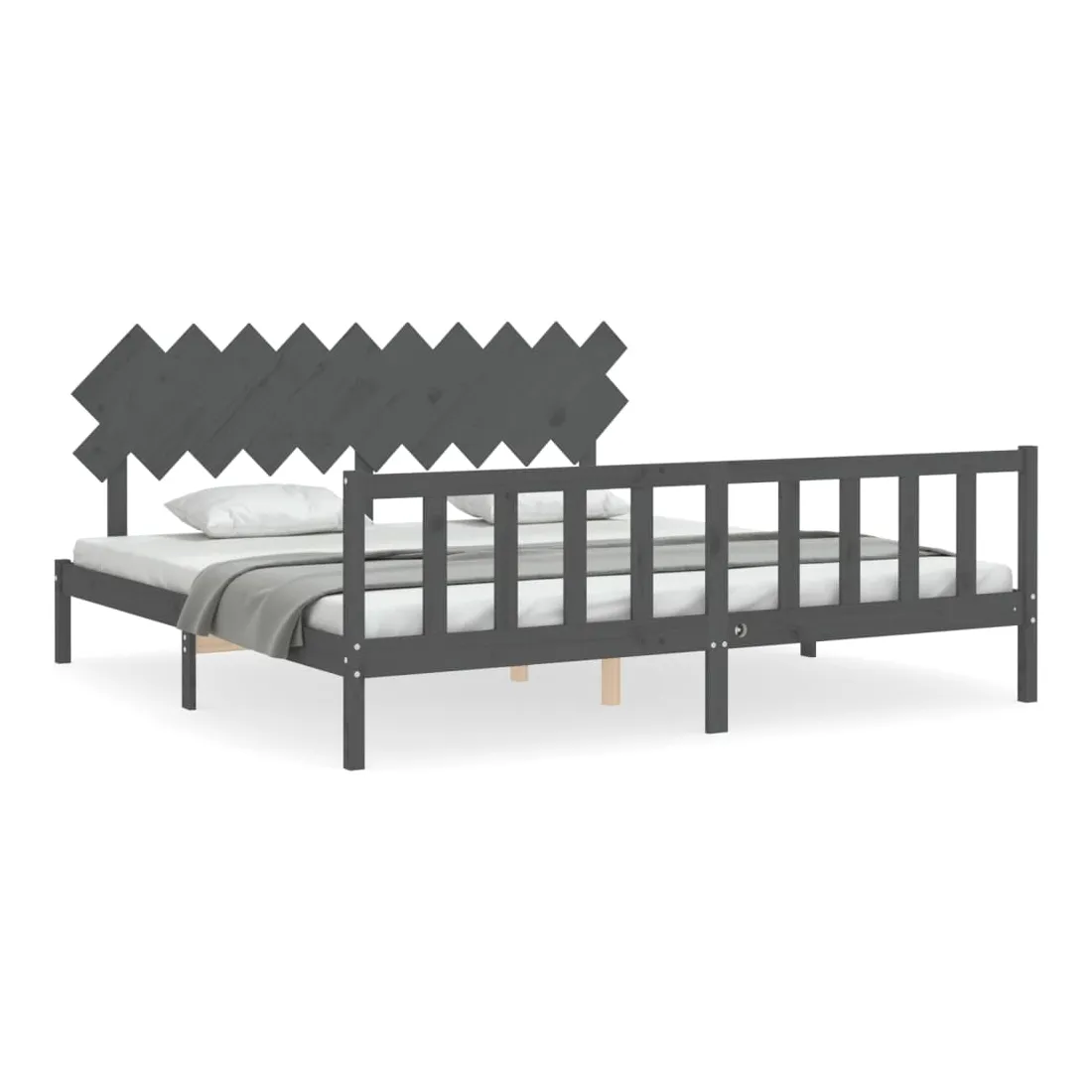 Cadre de lit sans matelas gris 200x200 cm bois massif de pin