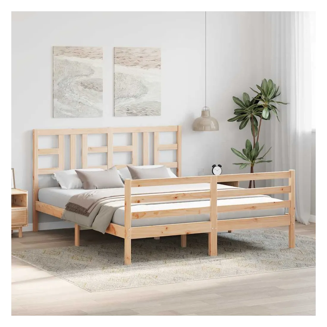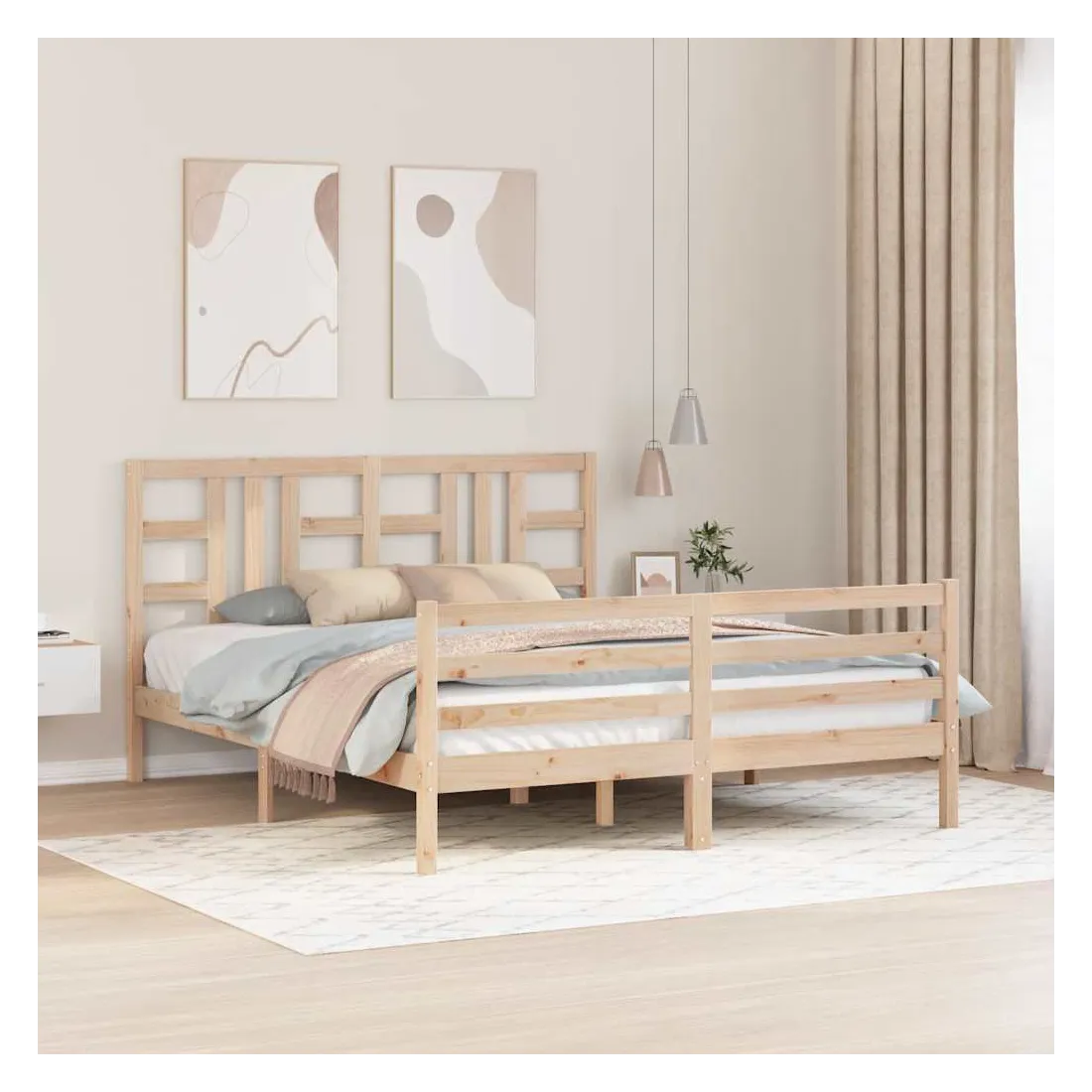 Profitez d'une bonne nuit de sommeil dans ce cadre de lit en bois ! Il sera un supplément pratique et décoratif à votre intérieur. Matériau durable : le bois de pin massif est un matériau naturel magnifique. Le bois de pin a un grain droit et les nœuds donnent au matériau son aspect caractéristique et rustique. Fabriqué en pin massif, ce lit est robuste et durable.Lattes en contreplaqué : les lattes en contreplaqué assurent une bonne répartition du poids, garantissant à votre matelas le soutien et la respirabilité dont il a tant besoin.Tête de lit et pied de lit fonctionnels : la tête et le pied de lit du lit en bois peuvent maintenir votre matelas en place. De plus, la tête de lit vous offre un excellent soutien du dos lorsque vous vous asseyez dans le lit pour lire ou regarder la télévision. Bon à savoir :Un matelas n'est pas inclus avec ce lit. Nous offrons une sélection variée de matelas. Vous pouvez consulter notre boutique pour trouver un matelas assorti.
