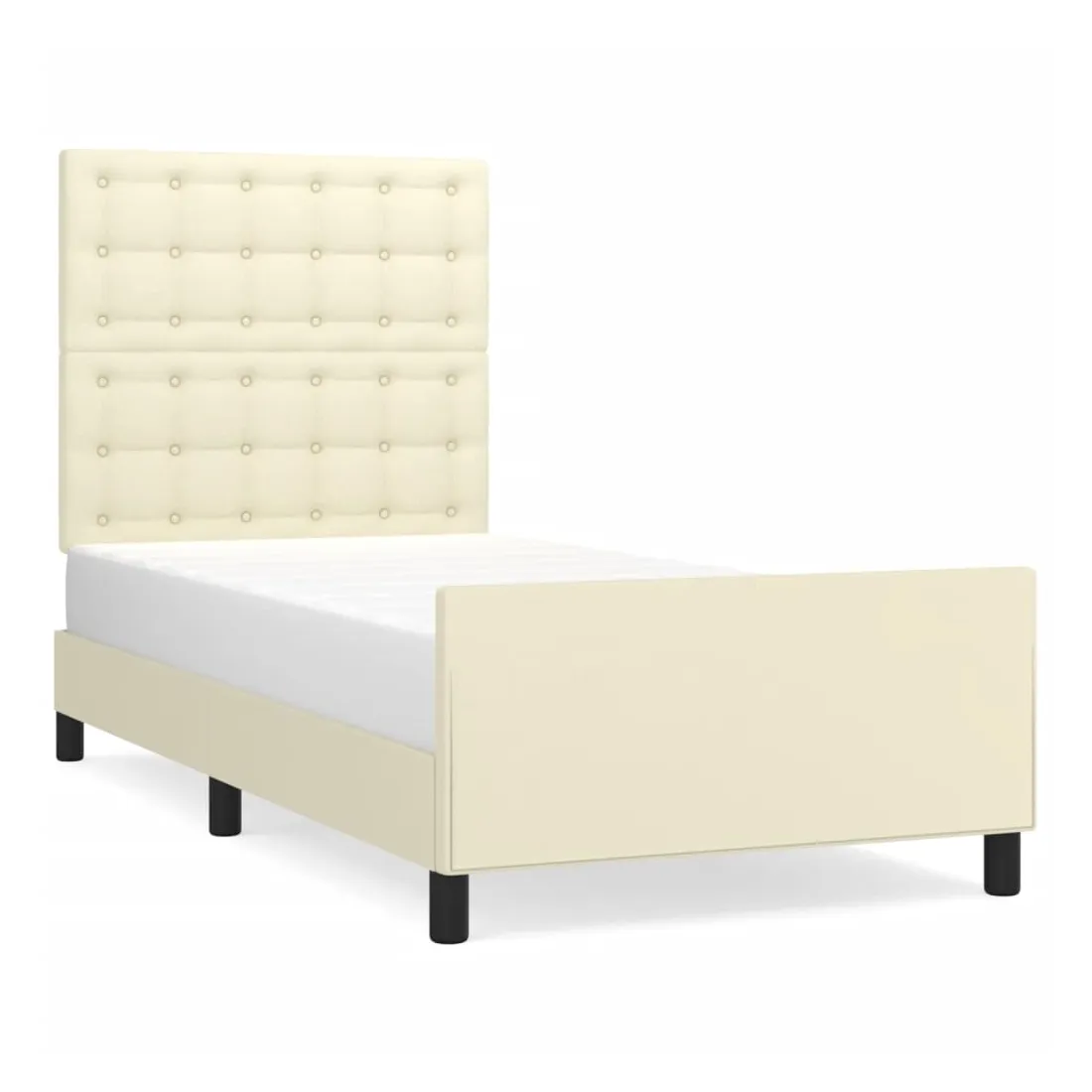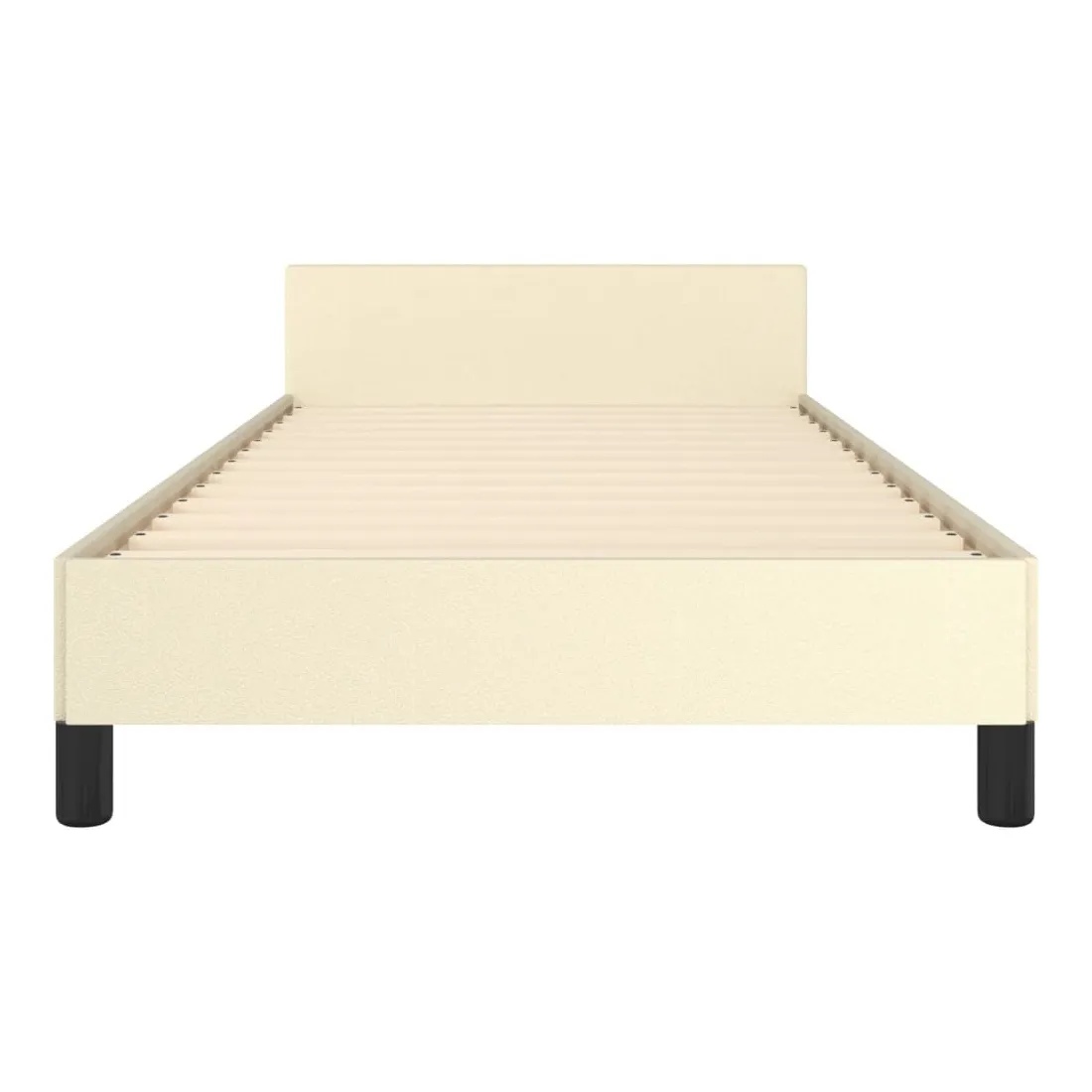Obtenez une meilleure nuit de sommeil reposante grâce à ce cadre de lit avec tête de lit ! Il est un supplément accueillant à toute chambre à coucher. Similicuir durable : le similicuir de qualité supérieure est un matériau très durable. Il est résistant aux taches, ce qui le rend facile à nettoyer avec un chiffon humide. La surface lisse donne également un aspect luxueux et la beauté du cuir véritable.Hauteur réglable : la tête de lit est réglable en hauteur selon vos préférences.Pieds de soutien : le lit est soutenu par des pieds robustes, qui assurent sa stabilité, sa sécurité et sa fermeté.Lattes de contreplaqué : les lattes de contreplaqué assurent une bonne répartition du poids, garantissant que le matelas reste en place à chaque torsion de votre corps pendant le sommeil.Excellent soutien : la tête de lit vous offre un excellent soutien du dos lorsque vous êtes assis dans votre lit pour lire ou regarder la télévision. Remarque :La livraison comprend uniquement un cadre de lit. Le matelas n'est pas inclus. Vous pouvez consulter notre boutique pour trouver les matelas assortis.Chaque produit est livré avec un manuel de montage dans la boîte pour un montage facile.