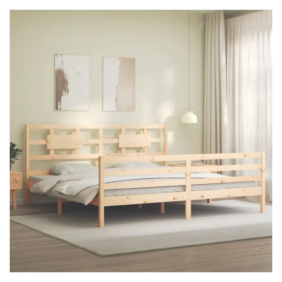 Profitez d'une bonne nuit de sommeil dans ce cadre de lit en bois ! Il sera un supplément pratique et décoratif à votre intérieur. Matériau durable : le bois de pin massif est un matériau naturel magnifique. Le bois de pin a un grain droit et les nœuds donnent au matériau son aspect caractéristique et rustique. Fabriqué en pin massif, ce lit est robuste et durable.Lattes en contreplaqué : les lattes en contreplaqué assurent une bonne répartition du poids, garantissant à votre matelas le soutien et la respirabilité dont il a tant besoin.Tête de lit et pied de lit fonctionnels : la tête et le pied de lit du lit en bois peuvent maintenir votre matelas en place. De plus, la tête de lit vous offre un excellent soutien du dos lorsque vous vous asseyez dans le lit pour lire ou regarder la télévision. Bon à savoir : Un matelas n'est pas inclus avec ce lit. Nous offrons une sélection variée de matelas. Vous pouvez consulter notre boutique pour trouver un matelas assorti.Certaines pièces de tête de lit sont emballées dans les cartons du cadre de lit en raison du manque d’espace.