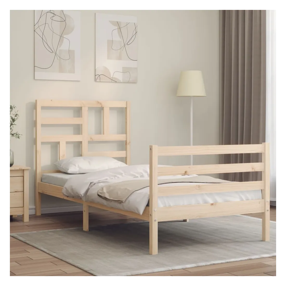 Profitez d'une bonne nuit de sommeil dans ce cadre de lit en bois ! Il sera un supplément pratique et décoratif à votre intérieur. Matériau durable : le bois de pin massif est un matériau naturel magnifique. Le bois de pin a un grain droit et les nœuds donnent au matériau son aspect caractéristique et rustique. Fabriqué en pin massif, ce lit est robuste et durable.Lattes en contreplaqué : les lattes en contreplaqué assurent une bonne répartition du poids, garantissant à votre matelas le soutien et la respirabilité dont il a tant besoin.Tête de lit et pied de lit fonctionnels : la tête et le pied de lit du lit en bois peuvent maintenir votre matelas en place. De plus, la tête de lit vous offre un excellent soutien du dos lorsque vous vous asseyez dans le lit pour lire ou regarder la télévision. Bon à savoir : Un matelas n'est pas inclus avec ce lit. Nous offrons une sélection variée de matelas. Vous pouvez consulter notre boutique pour trouver un matelas assorti.