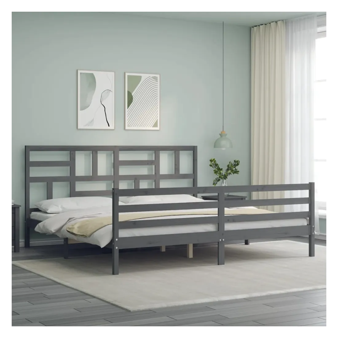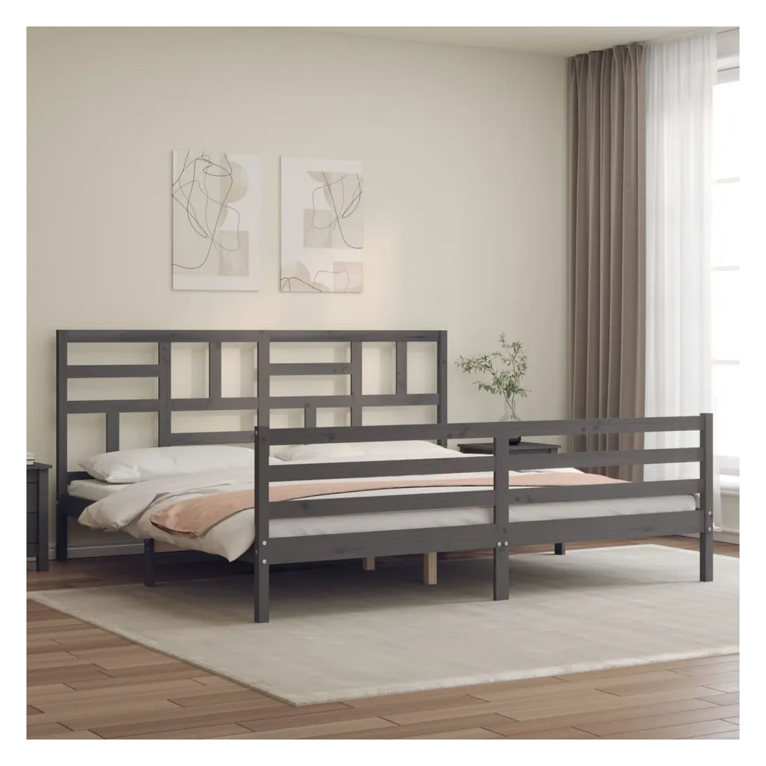 Cadre de lit sans matelas gris 200x200 cm bois massif