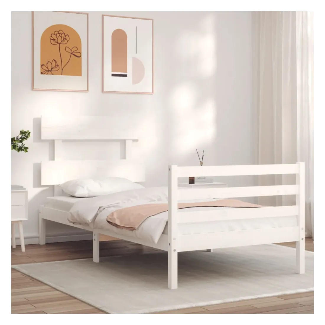 Cadre de lit sans matelas blanc 100x200 cm bois massif