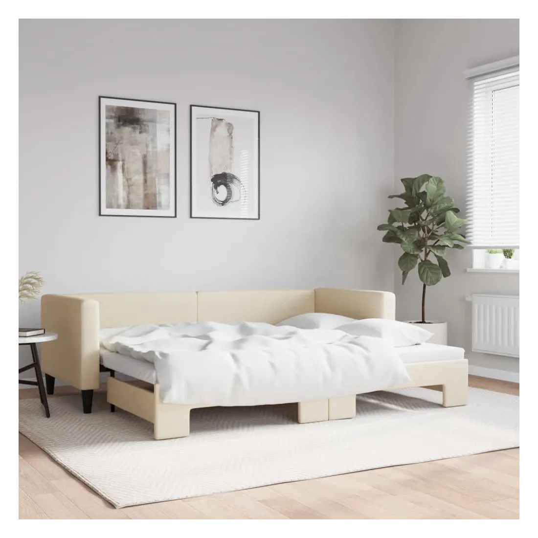 Ce lit de repos 2 en 1 avec lit gigogne, servant à la fois de canapé et de lit, constitue un supplément pratique et accrocheur à votre salon ou chambre à coucher. Lit de repos polyvalent : le canapé-lit fonctionne comme un canapé pendant la journée et se transforme facilement en lit double la nuit en retirant le lit gigogne, offrant une solution pratique pour accueillir des invités et maximiser l'espace. Tissu durable : lit d'appoint est en tissu. Le tissu présente un aspect simple et épuré tout en restant respirant et durable. Construction solide : la structure en bois et en métal du lit assure robustesse et stabilité. Bon à savoir :Les matelas ne sont pas inclus avec ce lit de repos. Nous proposons une sélection variée de matelas. Vous pouvez consulter notre boutique pour les matelas assortis.