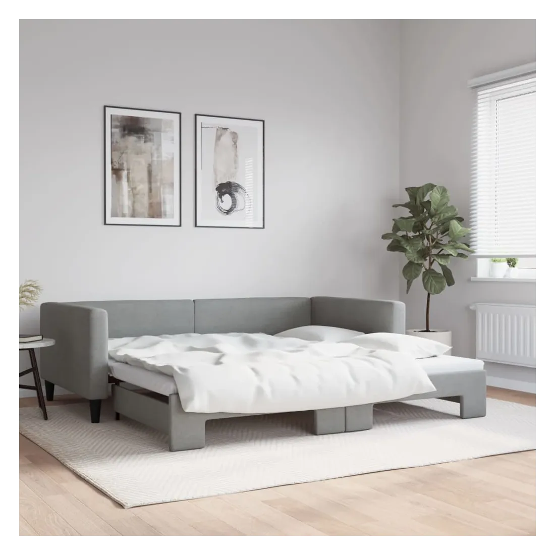 Ce lit de repos 2 en 1 avec lit gigogne, servant à la fois de canapé et de lit, constitue un supplément pratique et accrocheur à votre salon ou chambre à coucher. Lit de repos polyvalent : le canapé-lit fonctionne comme un canapé pendant la journée et se transforme facilement en lit double la nuit en retirant le lit gigogne, offrant une solution pratique pour accueillir des invités et maximiser l'espace. Tissu durable : lit d'appoint est en tissu. Le tissu présente un aspect simple et épuré tout en restant respirant et durable. Construction solide : la structure en bois et en métal du lit assure robustesse et stabilité. Bon à savoir :Les matelas ne sont pas inclus avec ce lit de repos. Nous proposons une sélection variée de matelas. Vous pouvez consulter notre boutique pour les matelas assortis.