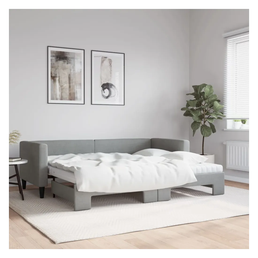 Ce lit de repos 2 en 1 avec lit gigogne, servant à la fois de canapé et de lit, constitue un supplément pratique et accrocheur à votre salon ou chambre à coucher. Lit de repos polyvalent : le canapé-lit fonctionne comme un canapé pendant la journée et se transforme facilement en lit double la nuit en retirant le lit gigogne, offrant une solution pratique pour accueillir des invités et maximiser l'espace. Matelas en mousse confortable : ce lit est fourni avec deux matelas en mousse pour un soutien maximal et un confort optimal. Tissu durable et construction solide : ce canapé-lit a une structure robuste en bois et en métal et est recouvert d'un tissu durable et confortable.