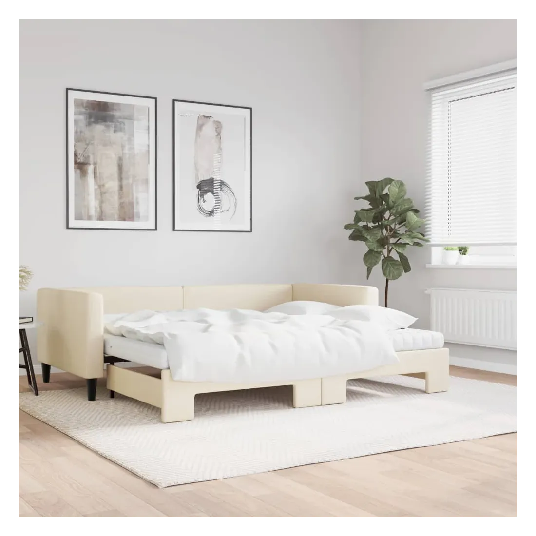 Ce lit de repos 2 en 1 avec lit gigogne, servant à la fois de canapé et de lit, constitue un supplément pratique et accrocheur à votre salon ou chambre à coucher. Lit de repos polyvalent : le canapé-lit fonctionne comme un canapé pendant la journée et se transforme facilement en lit double la nuit en retirant le lit gigogne, offrant une solution pratique pour accueillir des invités et maximiser l'espace. Matelas en mousse confortable : ce lit est fourni avec deux matelas en mousse pour un soutien maximal et un confort optimal. Tissu durable et construction solide : ce canapé-lit a une structure robuste en bois et en métal et est recouvert d'un tissu durable et confortable.