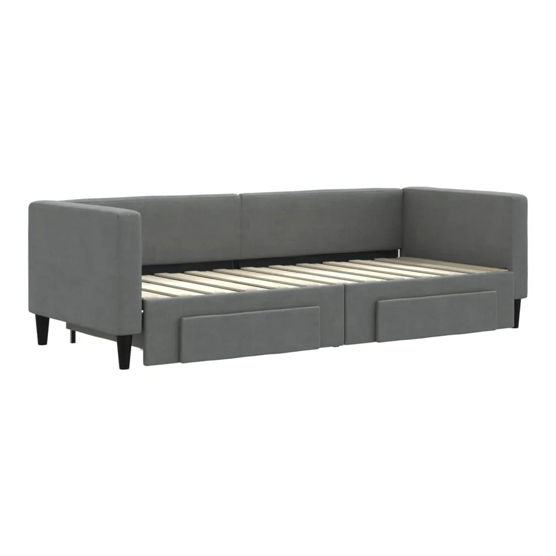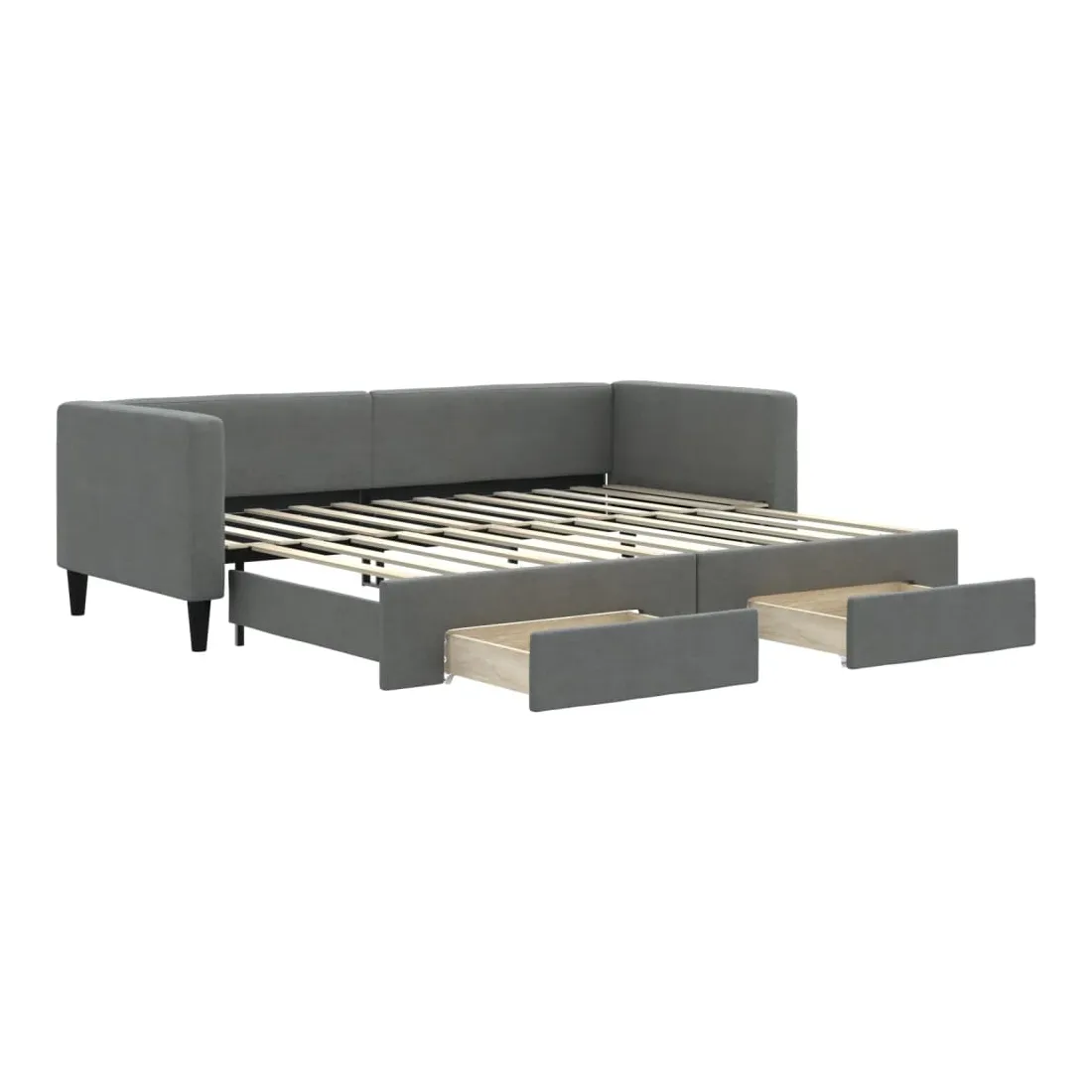 Ce lit de repos 2 en 1 avec lit gigogne, servant à la fois de canapé et de lit, constitue un supplément pratique et accrocheur à votre salon ou chambre à coucher. Lit de repos polyvalent : le canapé-lit fonctionne comme un canapé pendant la journée et se transforme facilement en lit double la nuit en retirant le lit gigogne, offrant une solution pratique pour accueillir des invités et maximiser l'espace. Grand espace de rangement : ce lit d'appoint dispose de deux tiroirs à roulettes qui offrent suffisamment d'espace pour ranger vos vêtements, chaussettes, jouets, coussins, etc. Tissu durable et construction solide : ce canapé-lit a une structure robuste en bois et en métal et est recouvert d'un tissu durable et confortable. Bon à savoir :Les matelas ne sont pas inclus avec ce lit de repos. Nous proposons une sélection variée de matelas. Vous pouvez consulter notre boutique pour les matelas assortis.